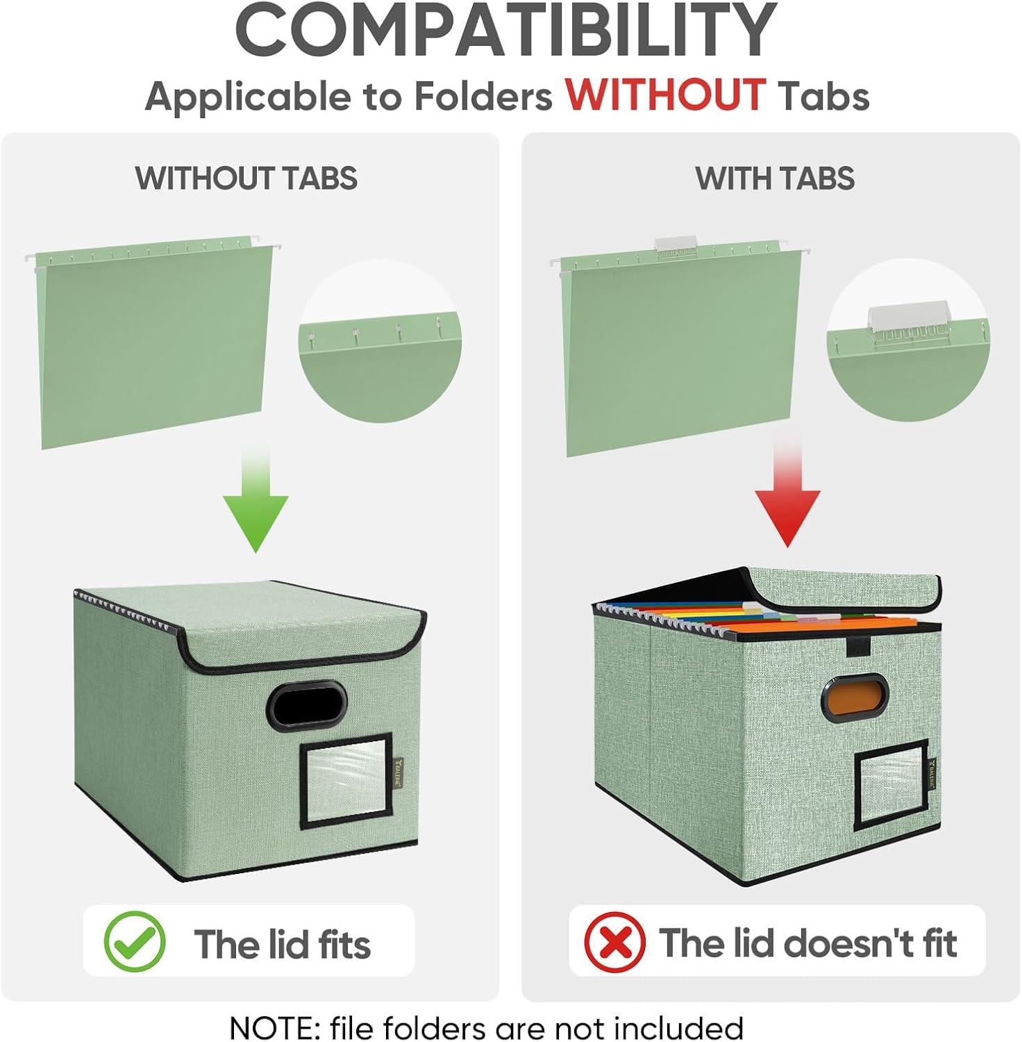 BALEINE File Organizer Box with Lid, Collapsible File Folder Organizer with Plastic Slide, Hanging File Folder Box for Office Document Storage (2 Pack, Green)