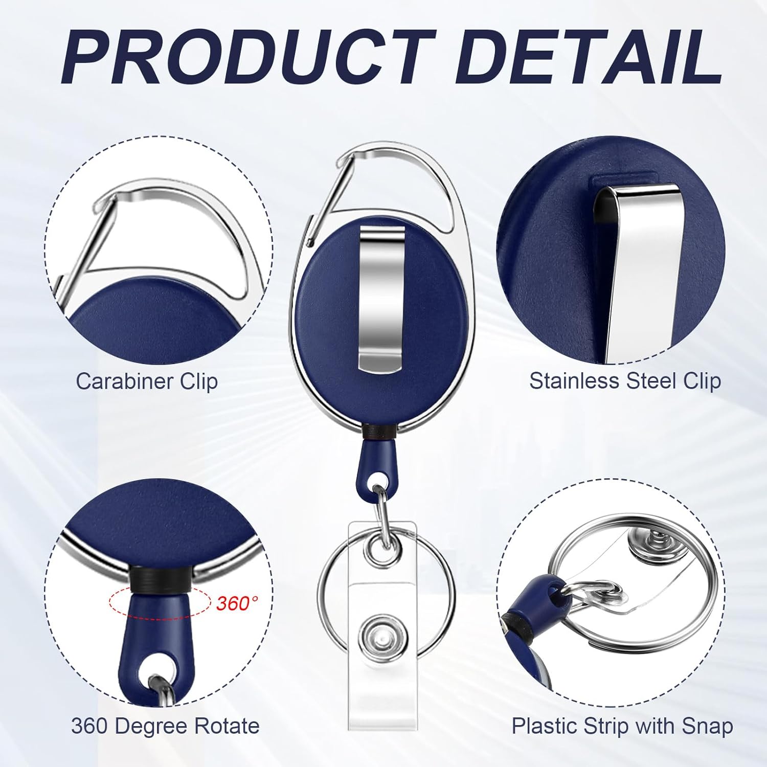 - Durable Material: the badge reel is chromed metal housing with quality plastic covers, matte texture plastic round reel case and fiber cord was made of wear resistant polyester material that is compact and sturdy, retraction force up to 4 oz/ 113 g