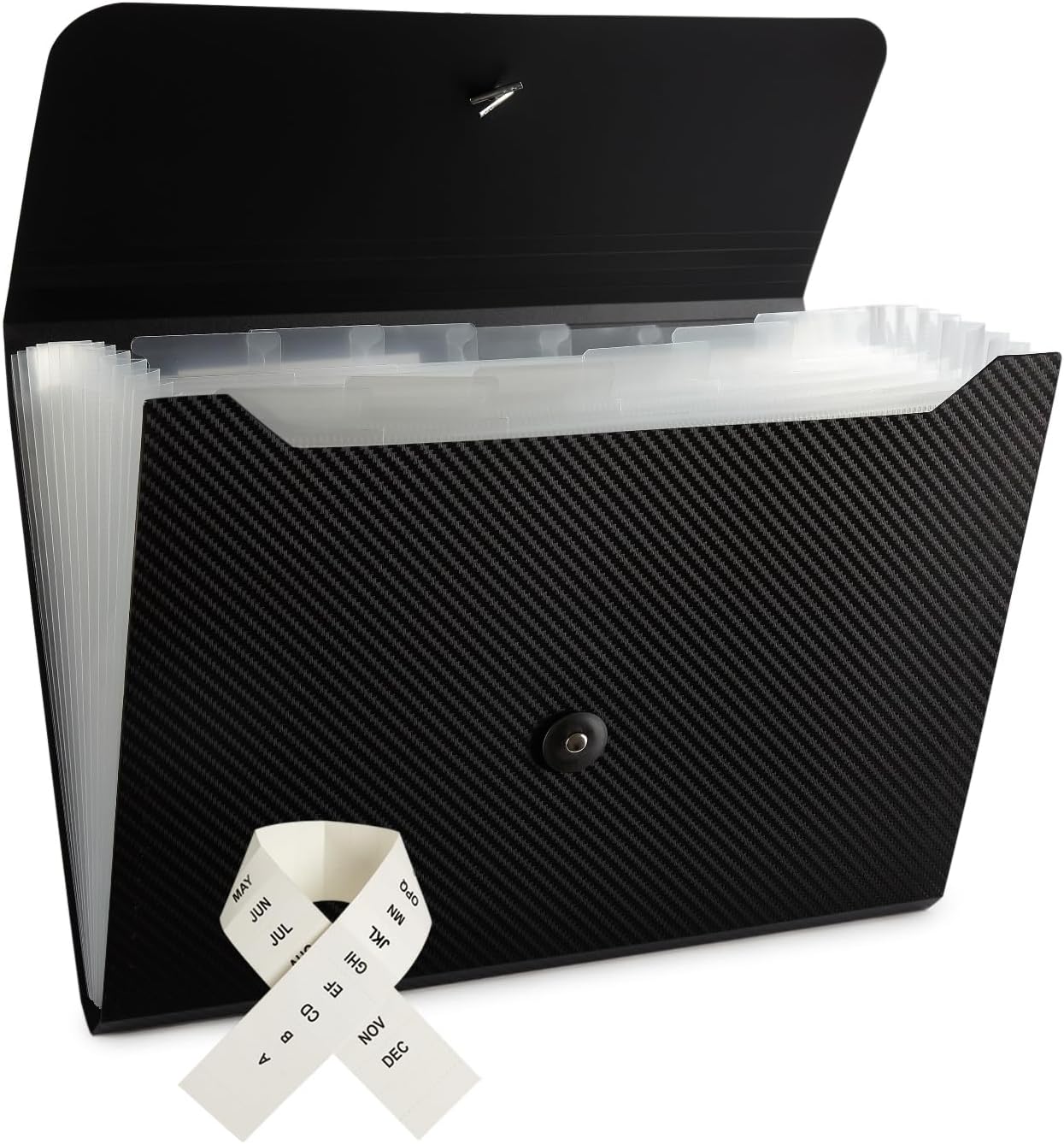 Expanding File Folder File Organizer 13 Pockets Accordion Filing Folder Expandable File Folder for Documents Aesthetic Paper Organizer Folder for Work, School, Home, Office, Black Transparent