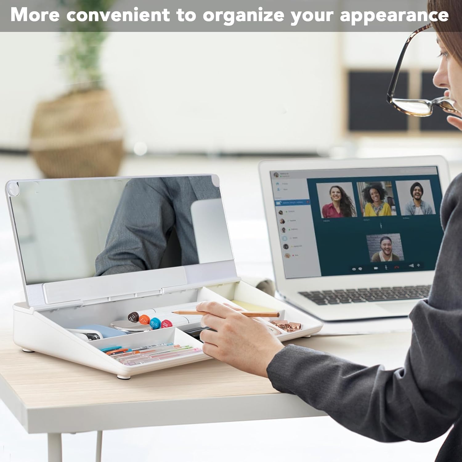 Varhomax Glass Desk Whiteboard with Built-in Mirror, Desktop Organizer Dry Erase White Board with Storage, to Do List Memo Notepad for Home Office and School Supplies