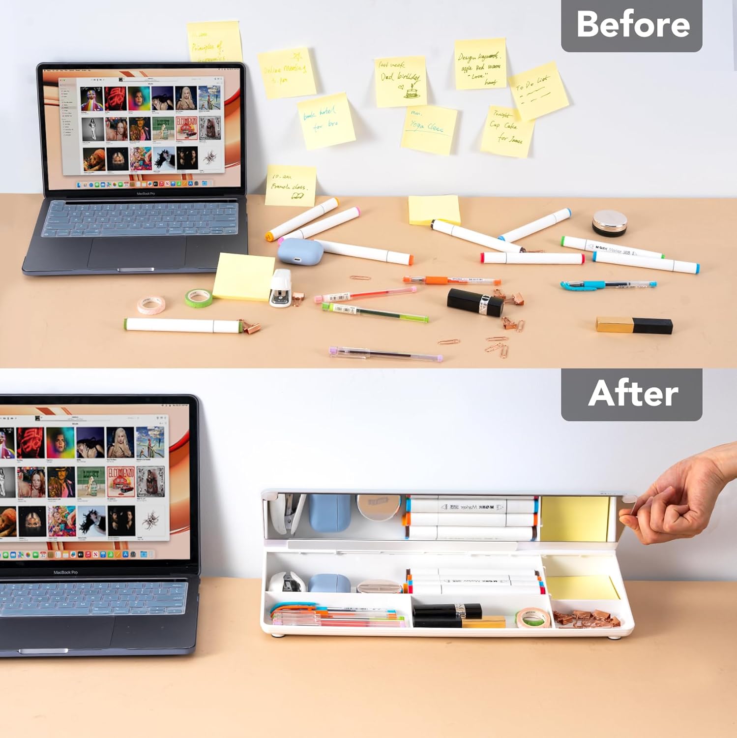 - Built-in Storage: More than a desktop whiteboard for task management, daily to-dos and reminders, the large storage caddy base helps you declutter your supplies and keep your desk neat and tidy