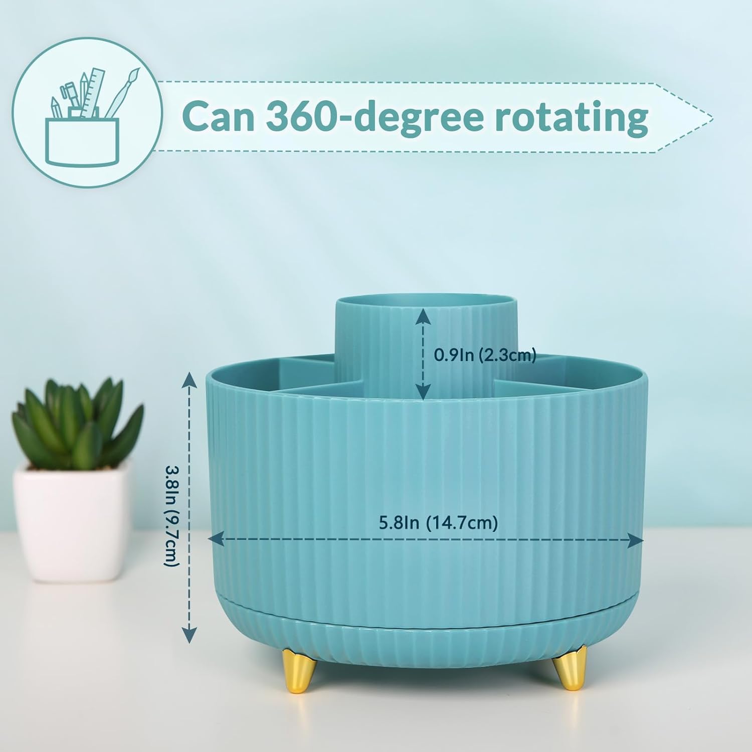 - Versatile Desktop Organizer: Whether you need to store everyday office supplies, art supplies, kitchen cooking condiments, or organize cosmetics and skincare products, this rotating pen holder caters to your requirements