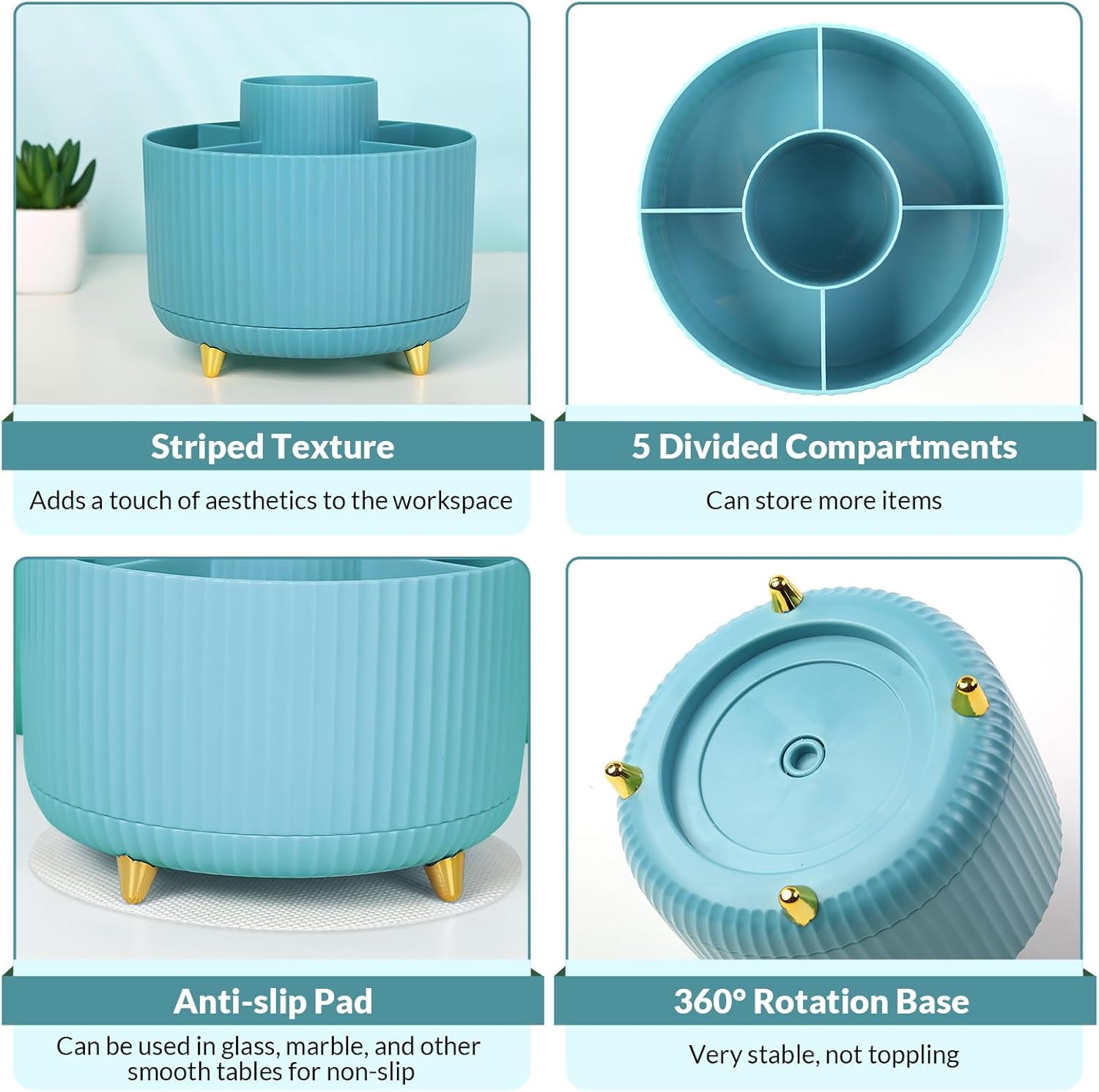 - Rotating Pen Holder: This pencil and pen holder combo offers a 360 degrees rotation feature, ensuring easy access to your writing tools, and making it even more convenient to find what you need