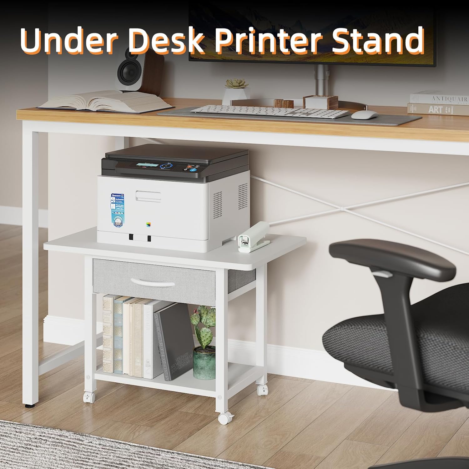 - 【2-Tier Printer Stand with Storage】Printer table with drawer provide a privacy space to place your desk office items. 2-Tier open shelves offer ample storage space for paper reams,file folder,ink cartridge and pen holder etc. Printer stand can ensure a clutter-free workspace and improved organization.