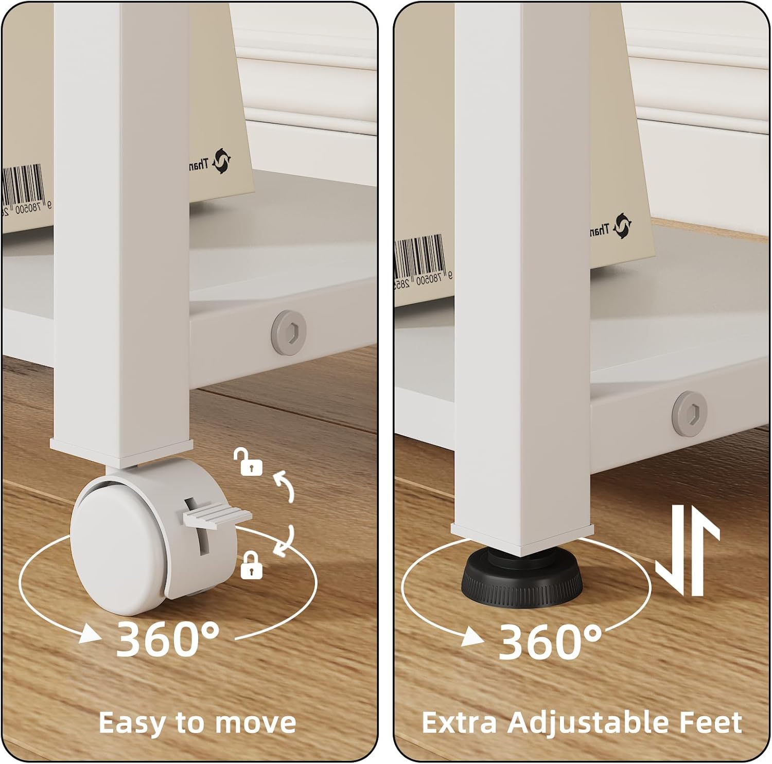- 【Lockable Printer Cart】360° rotation rolling printer cart equipped with 4 lockable caster wheels, can offer mobility and stability for secure and convenient move. Package come with 4 replacement adjustable feet to fit your different demand.