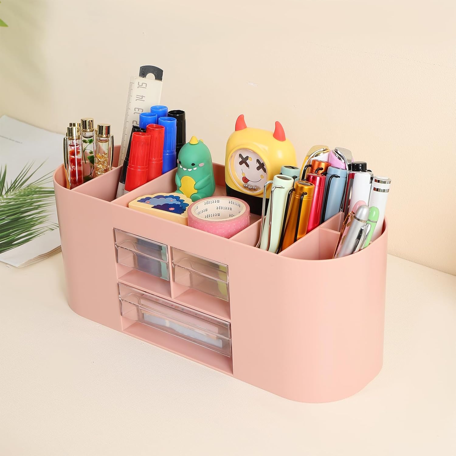 INSTOME Pencil Pen Holder for Desk with 3 Drawers - All-In-One Desk Organizer - Perfect Desk Accessories for Office Use - Stylish & Convenient Desk Organizers and Accessories (Pink)