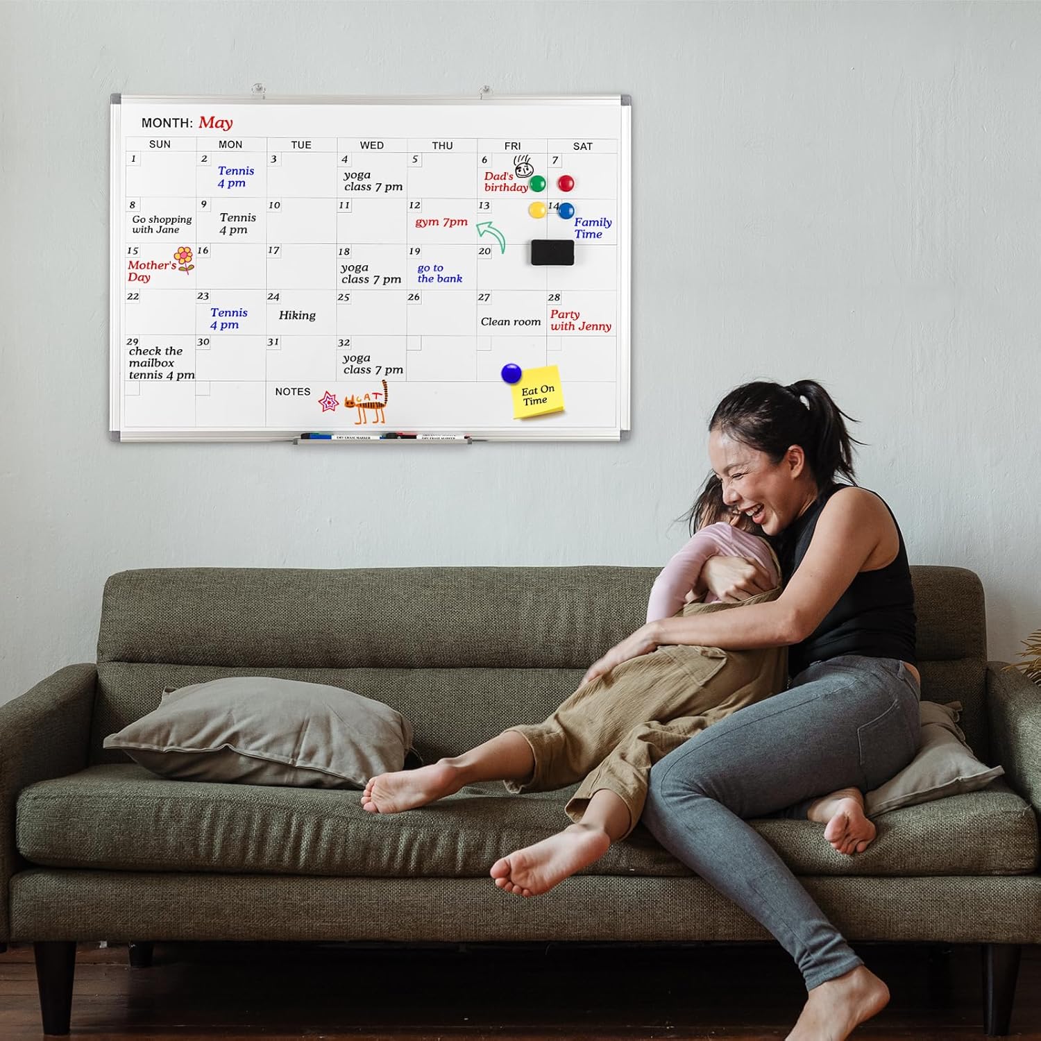Comix Magnetic Dry Erase Calendar Whiteboard, 36 x 24 Inches Monthly Calendar Dry Erase Board for Wall, Aluminum Frame Planner White Board with Dry Erase Markers, Eraser, Magnets
