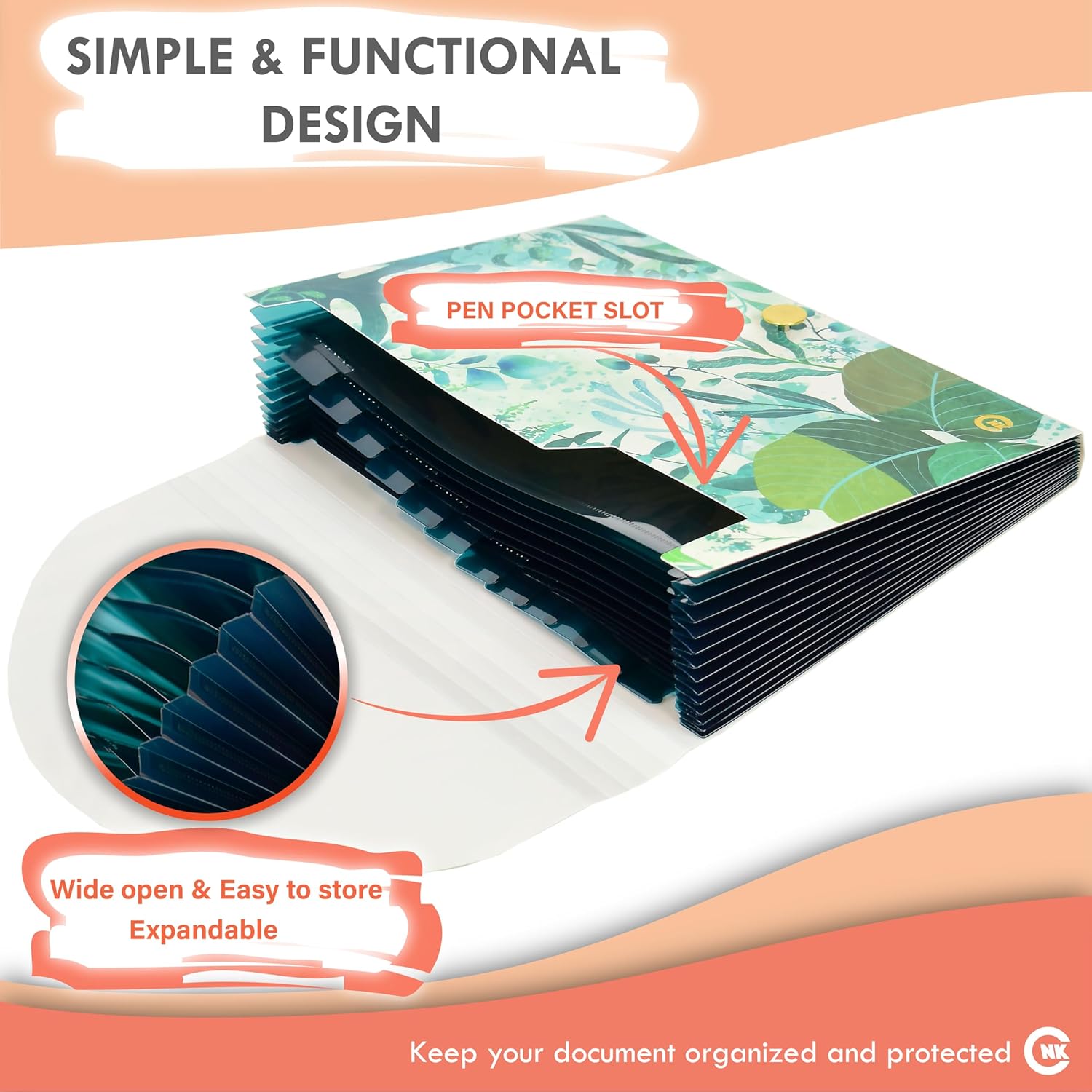 CNK File Folders Organizer with 13 Pockets Accordion Expanding Folder Documents Receipt Document Paper Pocket Filing Accordian Important expandable holder files alphabetical Labels Letter