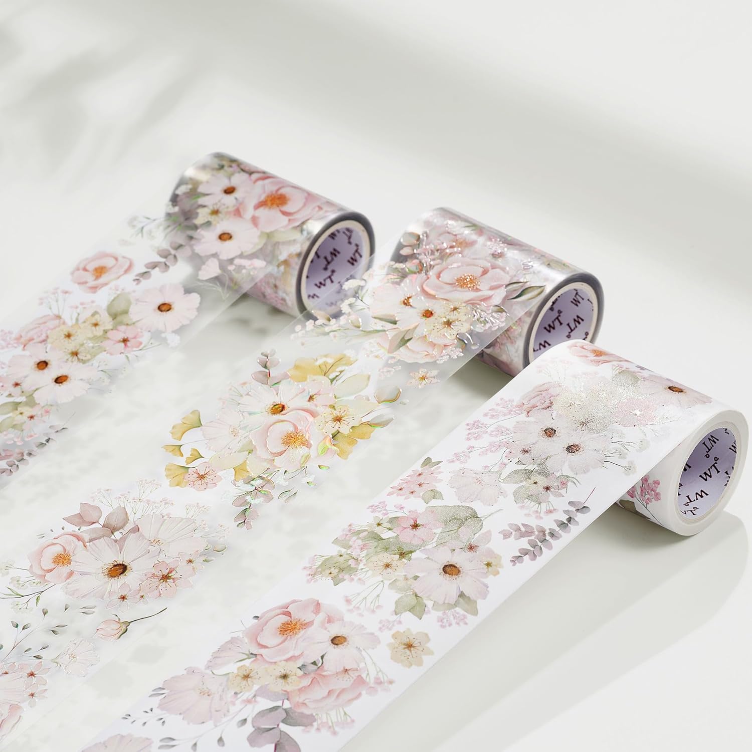 WT Blush Wide PET Tape, Single Roll, Original Designs, Watercolor Pink Floral Decorative Tape, Transparent Adhesive for Journaling, Scrapbooking, Bujo Planner DIY Craft Supplies