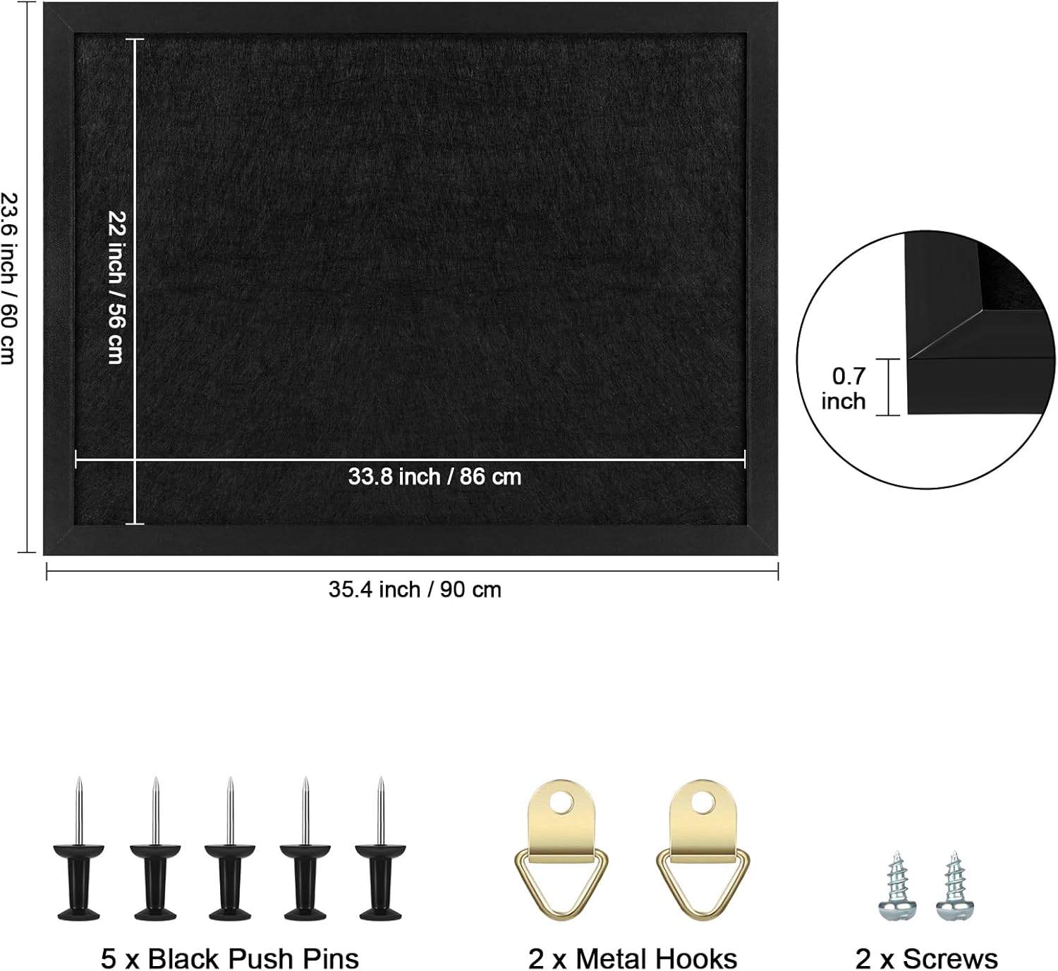 - Free Accessories: Package include 2 pack approx. 24 x 36 inch/60*90cm bulletin board. It also comes with the thing you need to install and keep your ideas on the board: 4 screws, 4 hooks, and 10 pins. Enough accessories for you to exercise your imagination