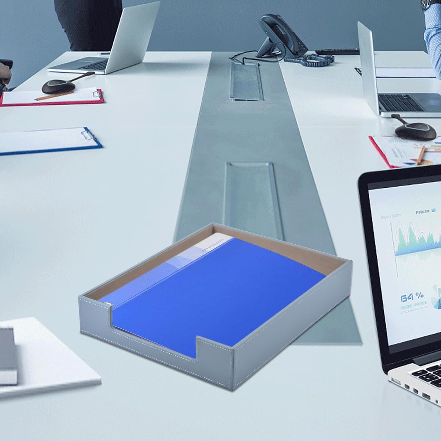 Leather Letter Tray,Stackable File Document Tray,Desk Organizer for Office Supplies,A4 Paper Case Rack,Desktop Organization,Pen Mail Magazine Storage Box (Grey)