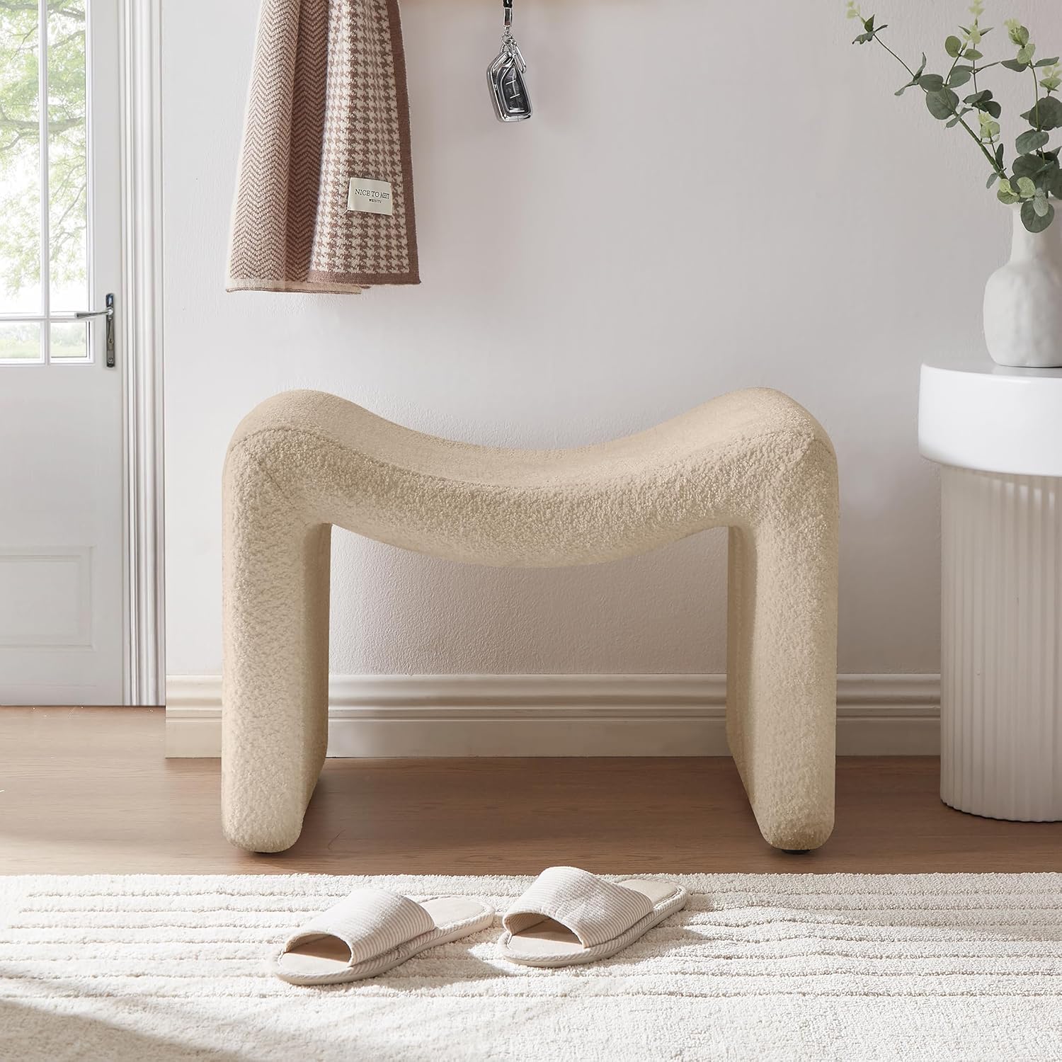 - Comfort Level and Security: The lint lining is smooth and comfortable; the hand feeling of sherpa lining feels like you are touching a lamb. It shows more fashion sense. The stool at the hallway belongs to soft design as a whole. It is extremely important for the family with kids and old people.