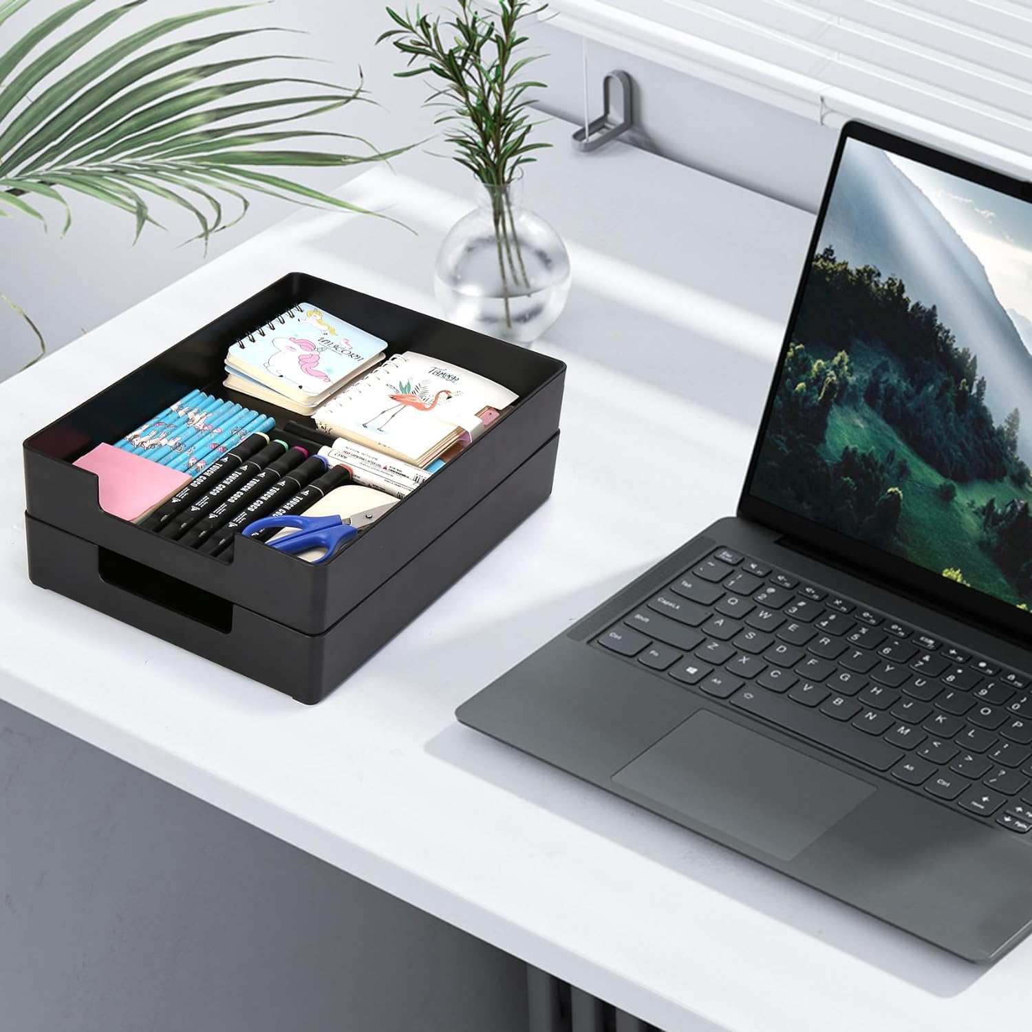 Letter-Size Tray, 2PCS Plastic Stackable A4 Paper Tray, Desk Drawer Organizer, Multi-use Large Storage Basket for Office Home Supplies,13 x 9.6 inch