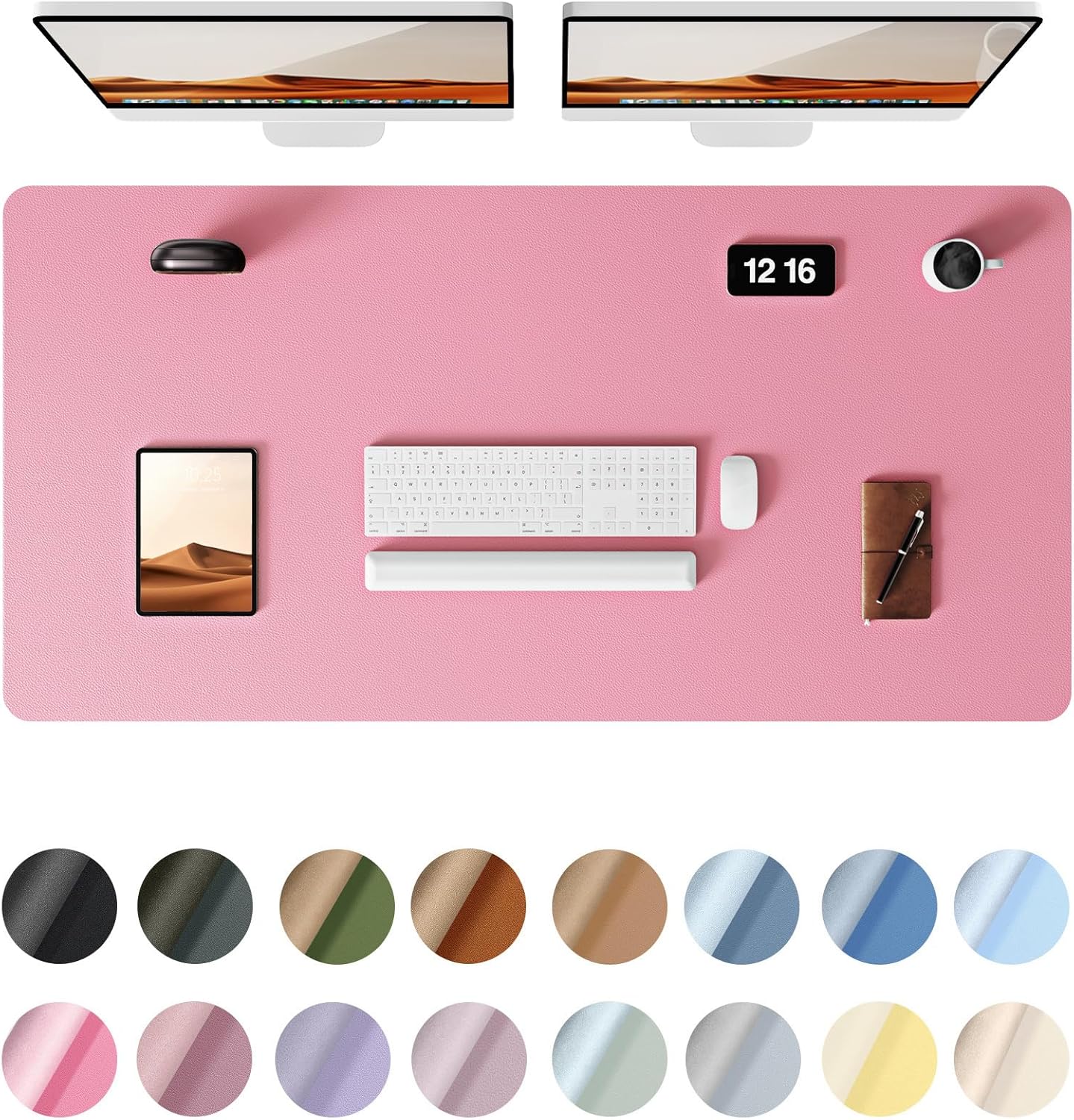 YSAGi Leather Desk Protector, Office Mat, Large Mouse Mat, Non-Slip PU Leather Blotter, Laptop Desk, Waterproof Writing Pad for Office and Home (Pink, 47.2" x 23.6")