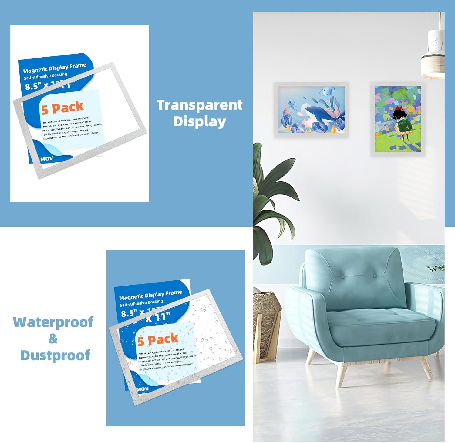 - 【MULTI-PURPOSE DISPLAY FRAME】The magnetic frames 8.5 x 11 are ideal for displaying signs in store, home, office, etc. The magnetic document holder can be used to display poster, certificate, photo, memo, etc. Delivery includes 5 pack magnetic frames for wall.