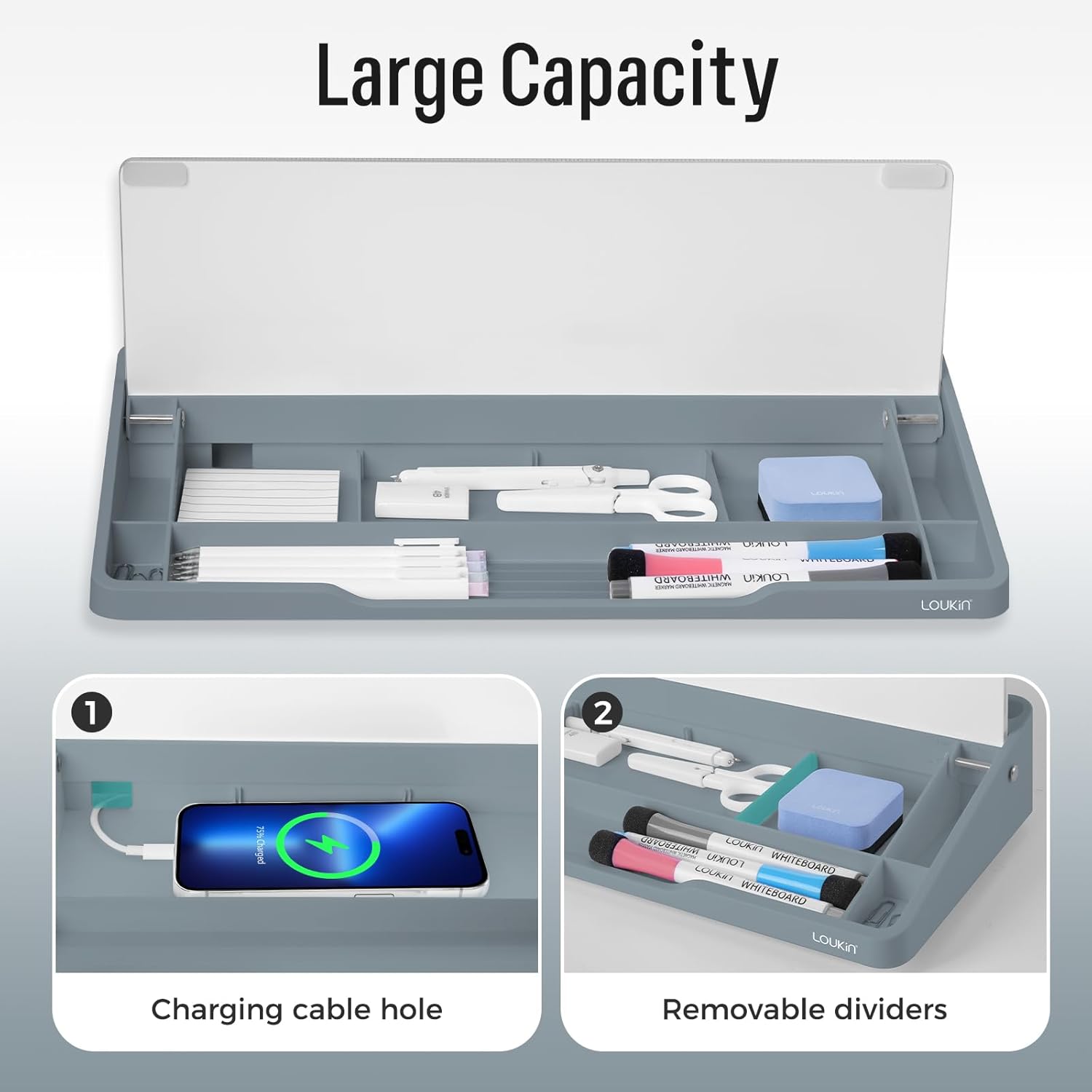 - Multifunction: A combination of writing board, desk organizer, keyboard stand and Pad/phone holder. Includes a charging cable hole on the back side of the product
