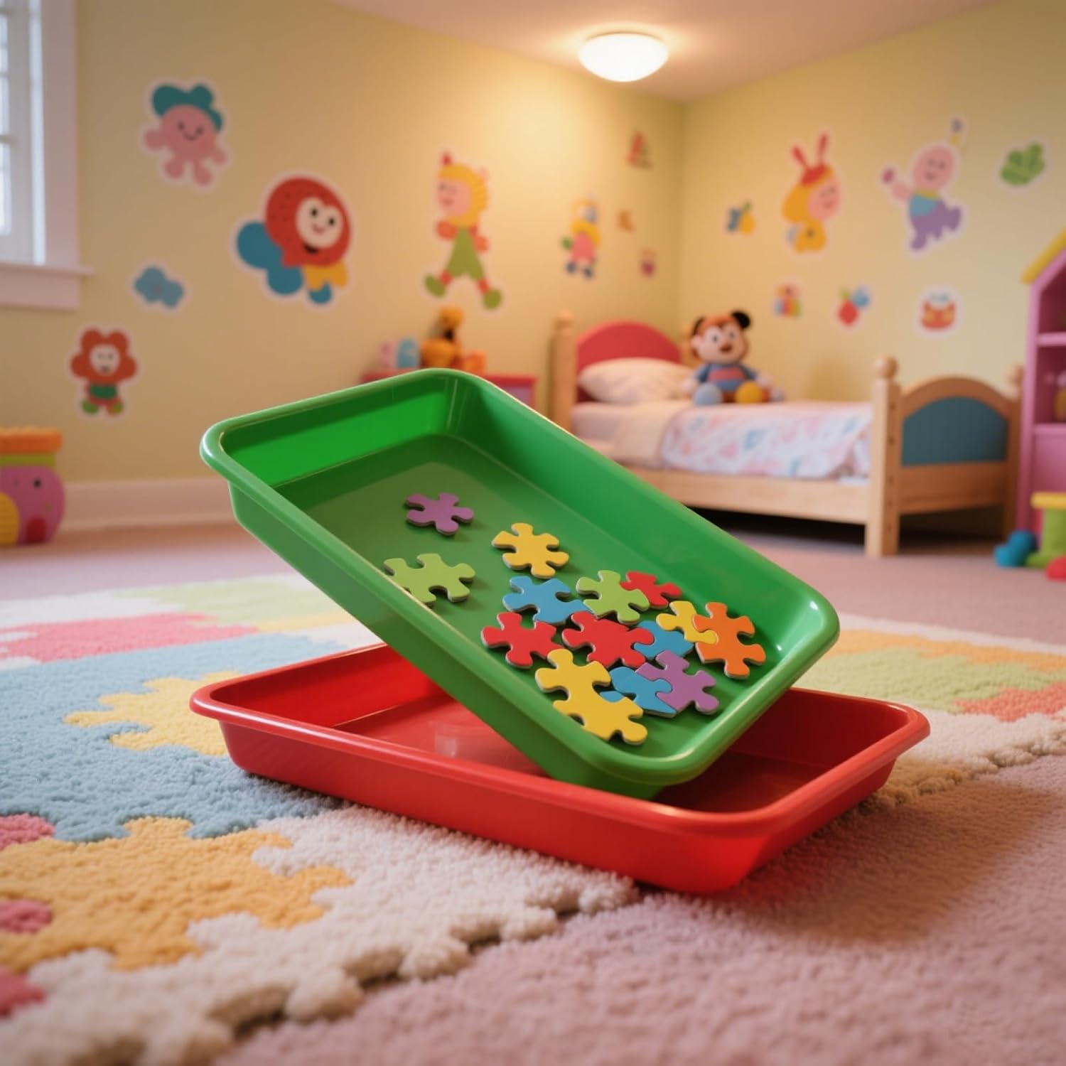 - COLORFUL SET - The package contains 30 activity plastic trays measuring 10.8 x 8.3 x 1.2 inches, including 5 different colors of red, yellow, blue, green, and white, 6 of each color. The abundant colors can help students simply learn how to store and sort their toys and develop good habits.