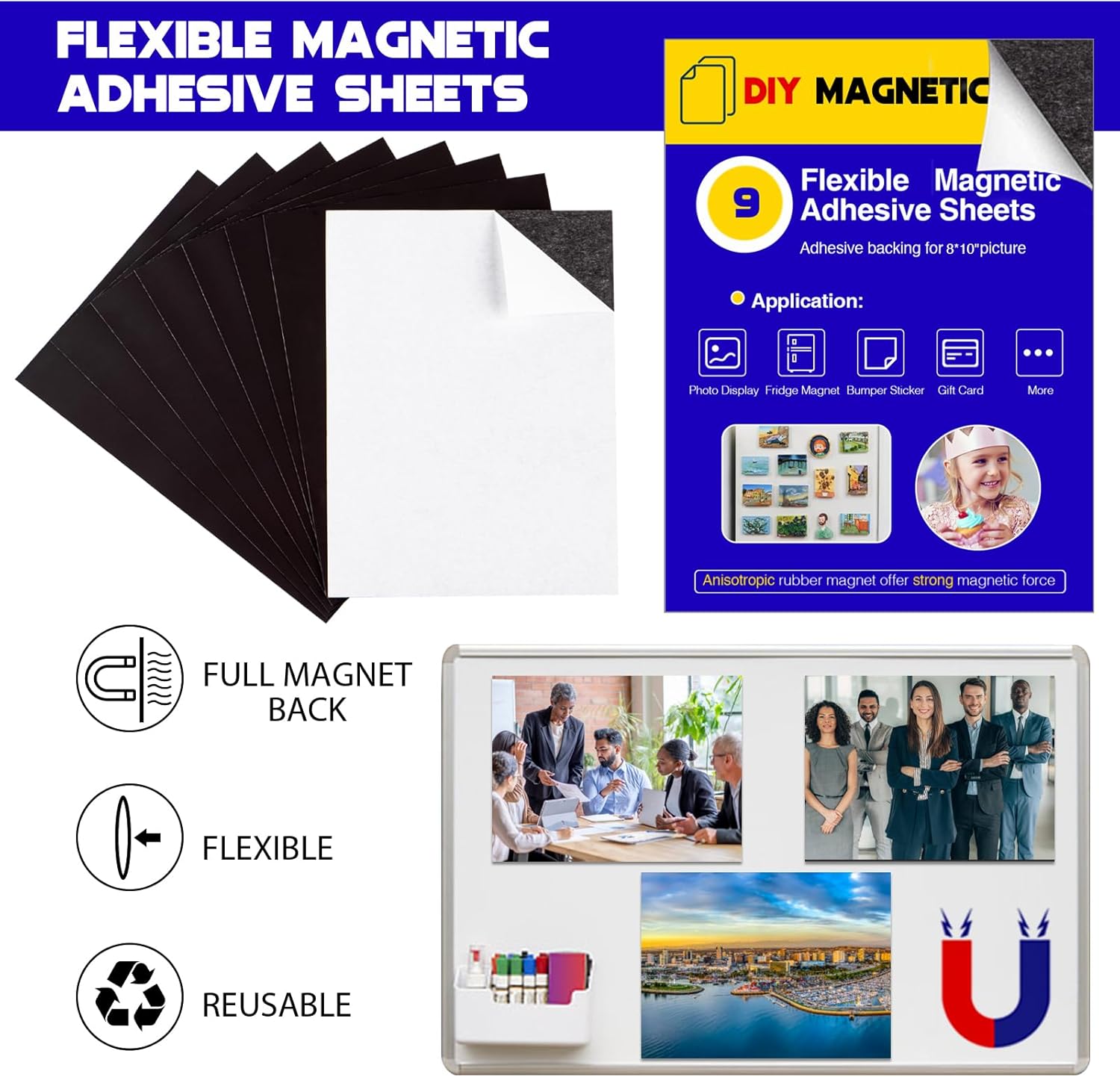 - Magnetic sheets with adhesive backing are ideal for creative kid projects, decoration fridge magnets, photo magnets, magnetic whiteboards, picture magnets.Perfect for any DIY projects.