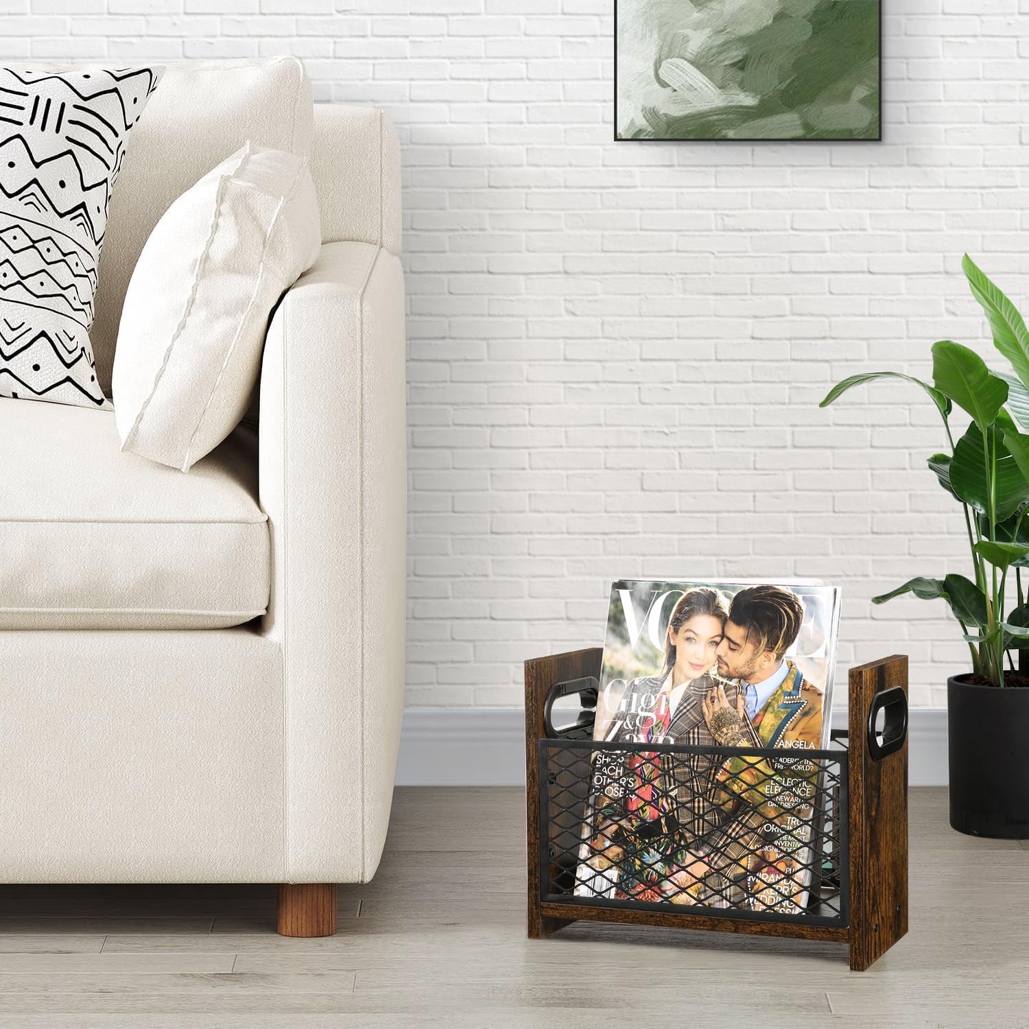 - Space Saving: Our magazine file holder sizes are about 11.6"L×5.0"W×9.5"H. Perfect size for a relatively small living room area. Rustic magazine rack helps reduce magazine clutter and keeps them all in one place. It looks great in your living room and keeps your floor or desktop organized.