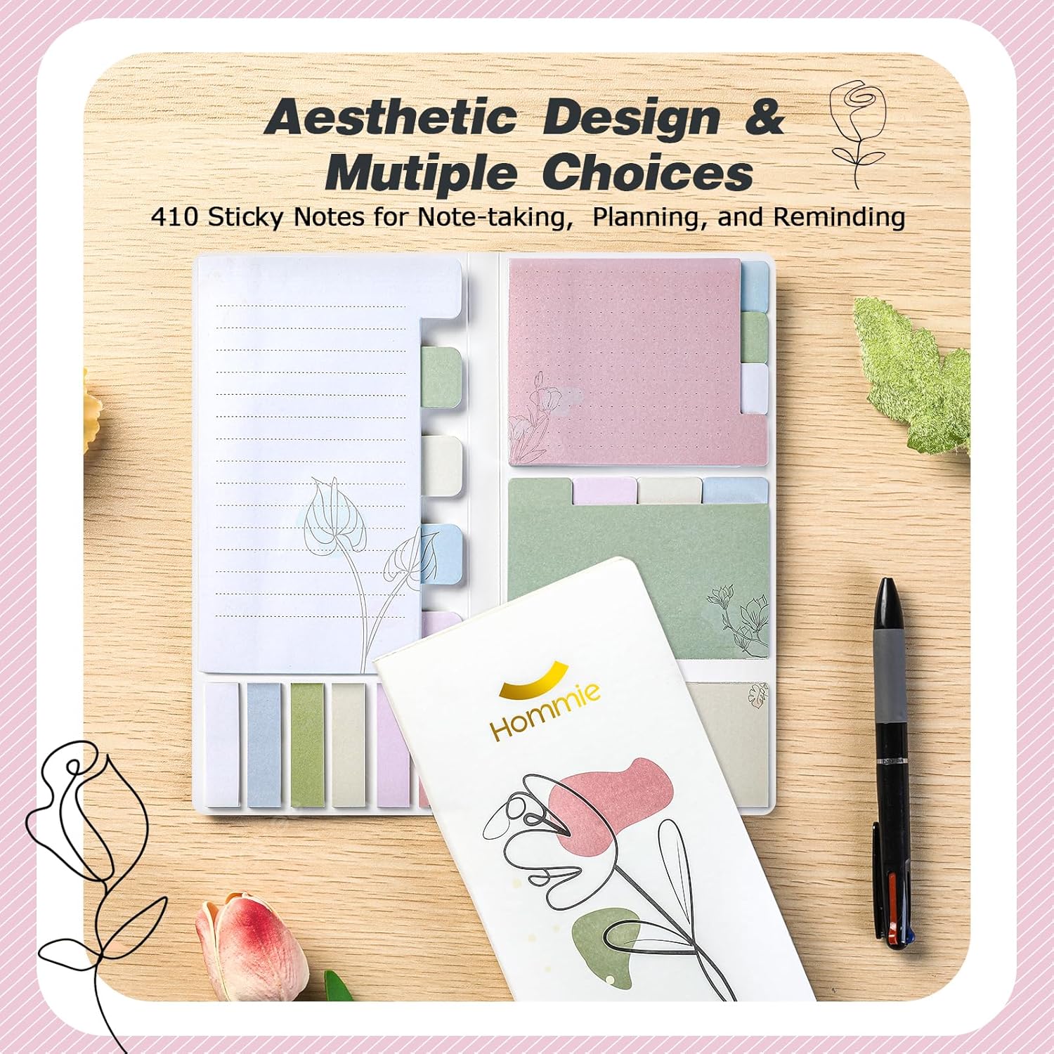 Hommie Sticky Notes Set, Divider Sticky Notes 410 Packs Planner Sticky Note Dividers Tabs with Color Coding for School Supplies, Office Supplies, Book Notes,Bible Sticky Notes