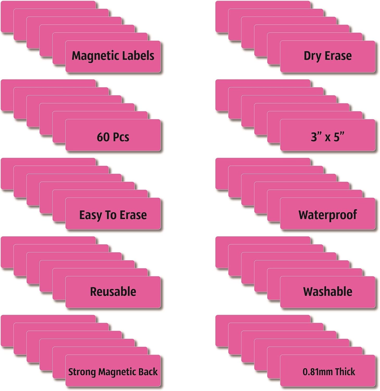 Magnetic Dry Erase Magnets Labels 3x1 inches, Reusable Name Tags, Organizing Schedules in Office/Classroom. Work on Fridge/White Board (Pink 60Pcs)