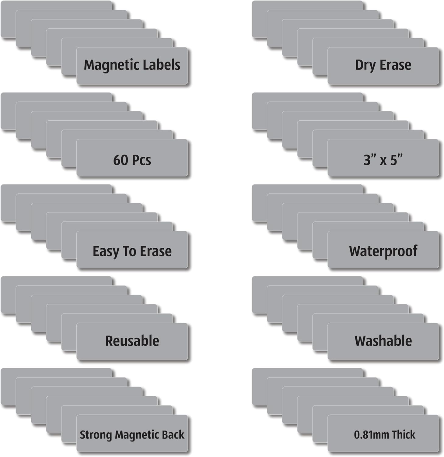 Magnetic Dry Erase Magnets Labels 3x1 inches, Reusable Name Tags, Organizing Schedules in Office/Classroom. Work on Fridge/White Board (Grey 60Pcs)