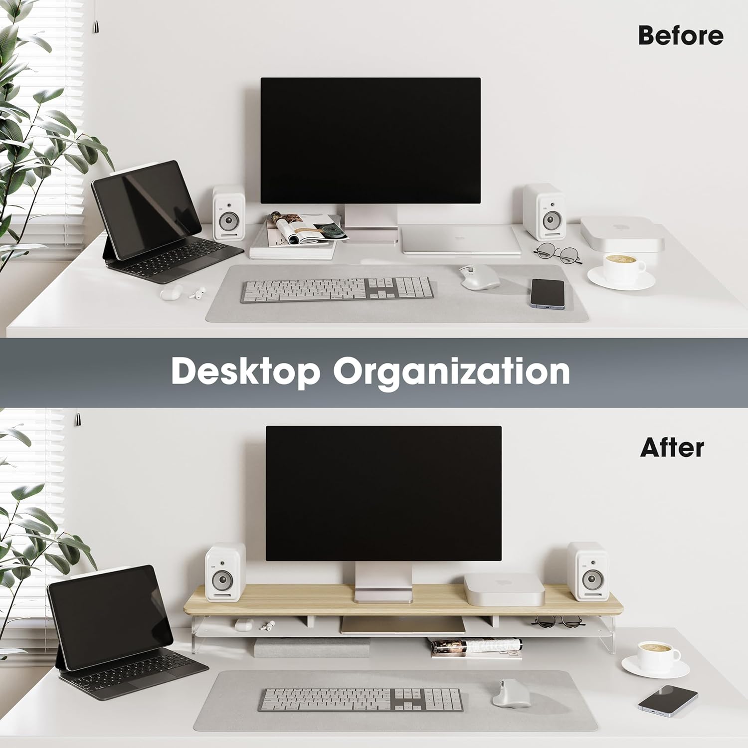 - 【Protect Your Cervical Spine & Eyes】: Acrylic monitor stand can raise your desktop by 4.7 inches to adjust to your eye level, reducing pressure on your neck and eyes.