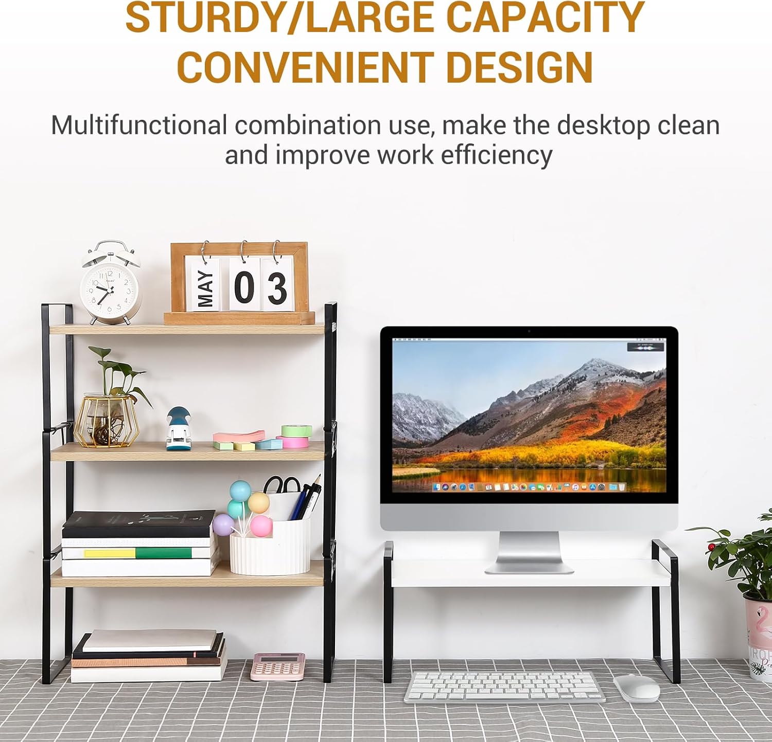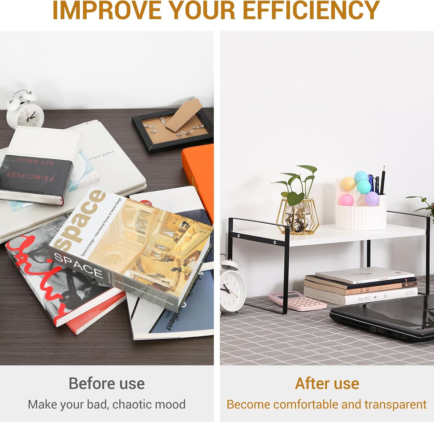 - 2.Removable combination, saving space: This office desk shelf organizer and accessories is composed of two parts, which can be adjusted according to the length of your table. In addition, this office desk shelf organizer and accessories has plenty of storage space, you can put your books, photos, cosmetics or some small toys, etc., to make your desktop more tidy, to help you create a more comfortable environment, let you enjoy your life and work