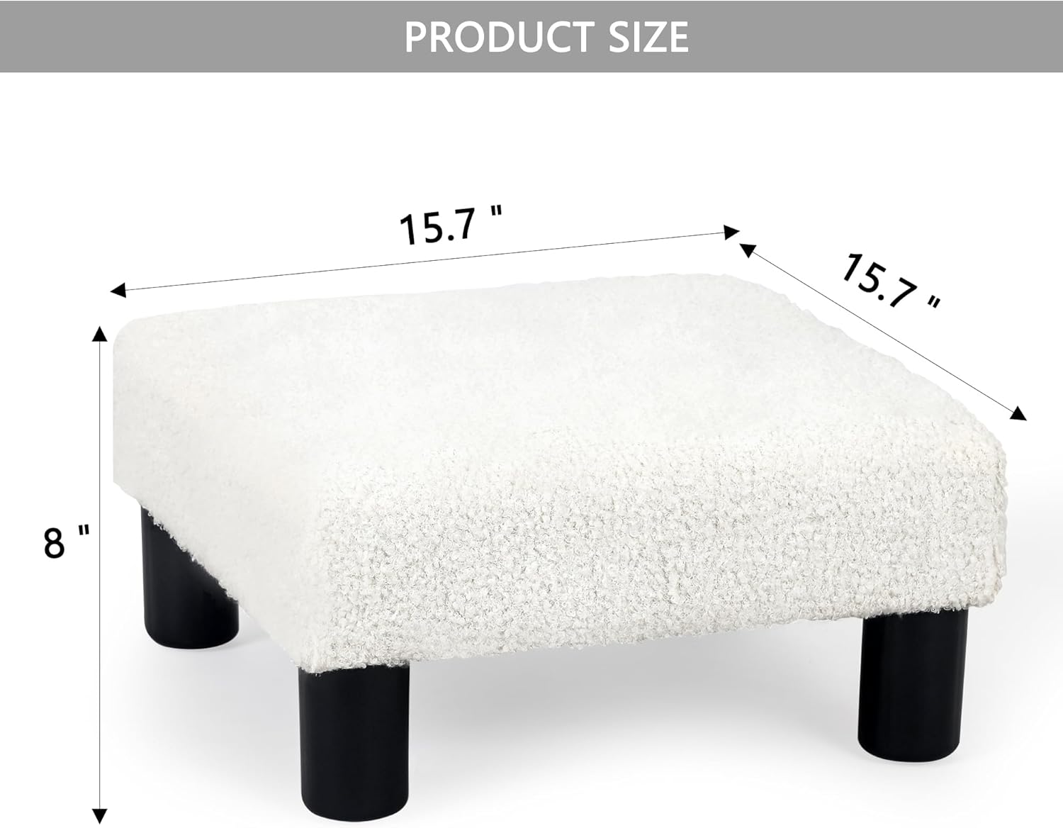- SMALL OTTOMAN DIMENSIONS: 15.7” Length x 15.7” Width x 8” Height ; Featuring small size and light weight, our ottoman is convenient for you to move and transport to play its multifunctional role. This footrest small ottoman stool is compact enough to keep near your couch, under chair or even under a desk.