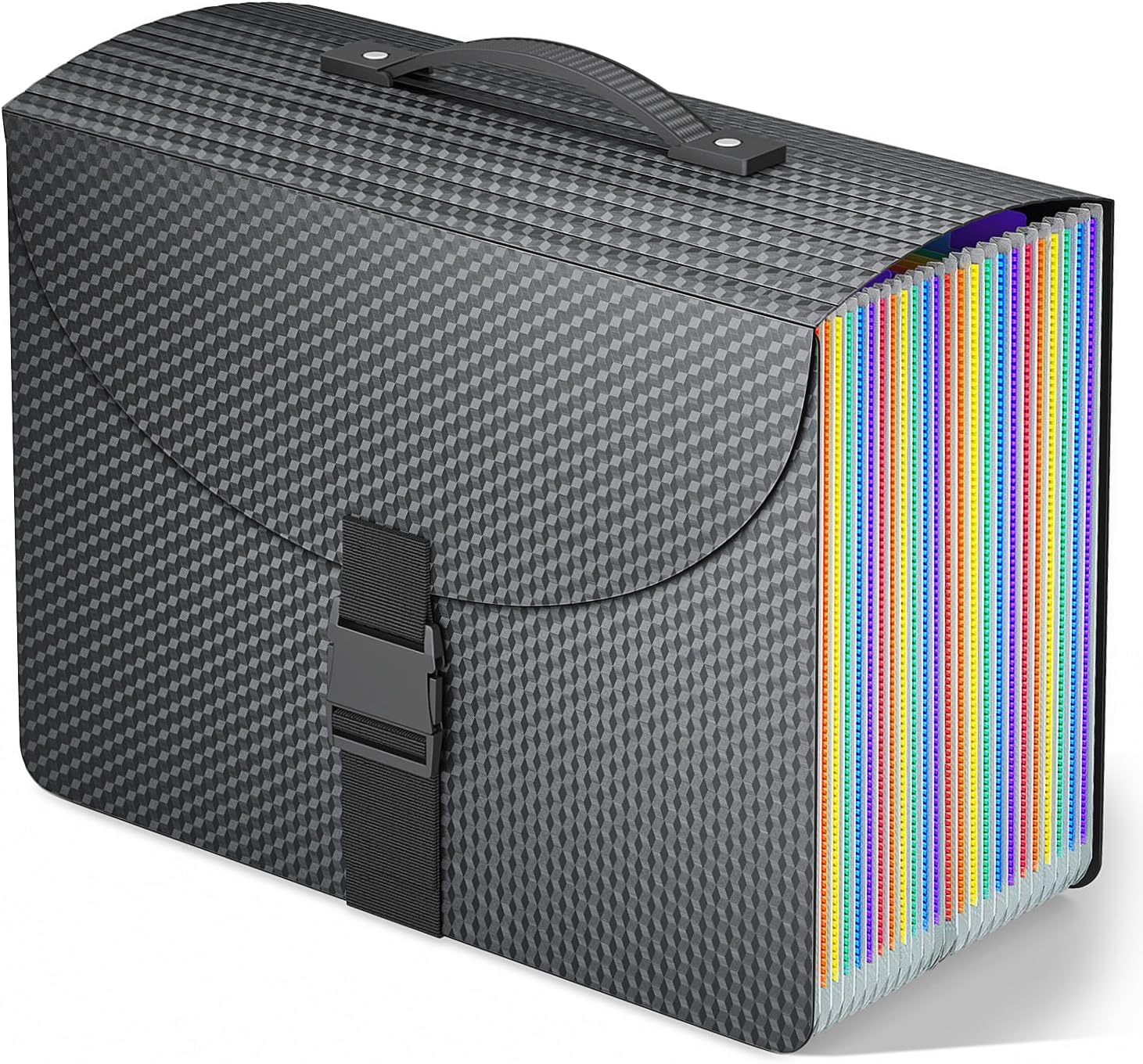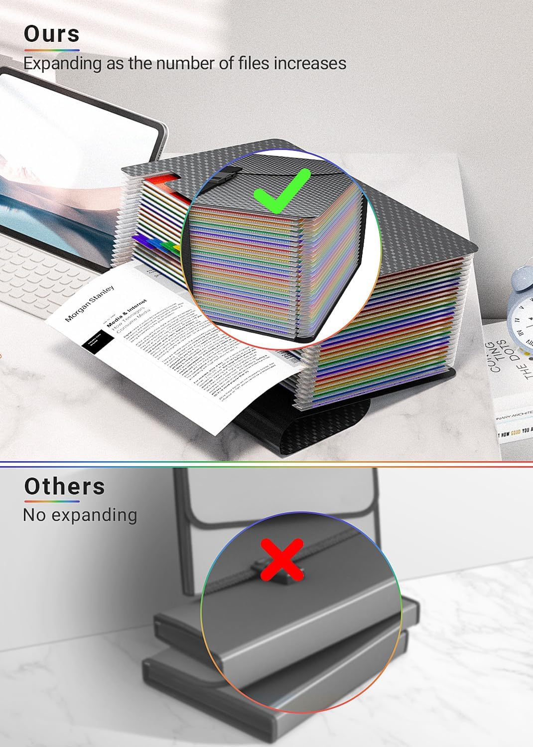 - ✔【UPGRADED】This innovative file organizer,designed with a durable plastic handle and a fashion buckle, successfully upgraded from traditional expanding file folders. More easily take all important documents away to any time and anywhere when hold a good amount of documents, the buckle is very good to protect the safety of files.