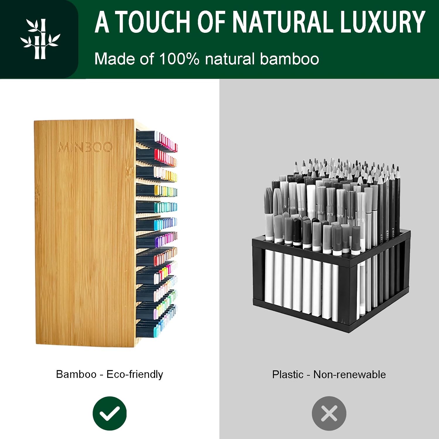- DESIGNED FOR CREATIVITY - This marker holder is designed with artists in mind. Whether you are a professional artist, illustrator, animator, or hobbyist, our bamboo organizer provides a convenient and practical solution to keep your art supplies organized and easily accessible.
