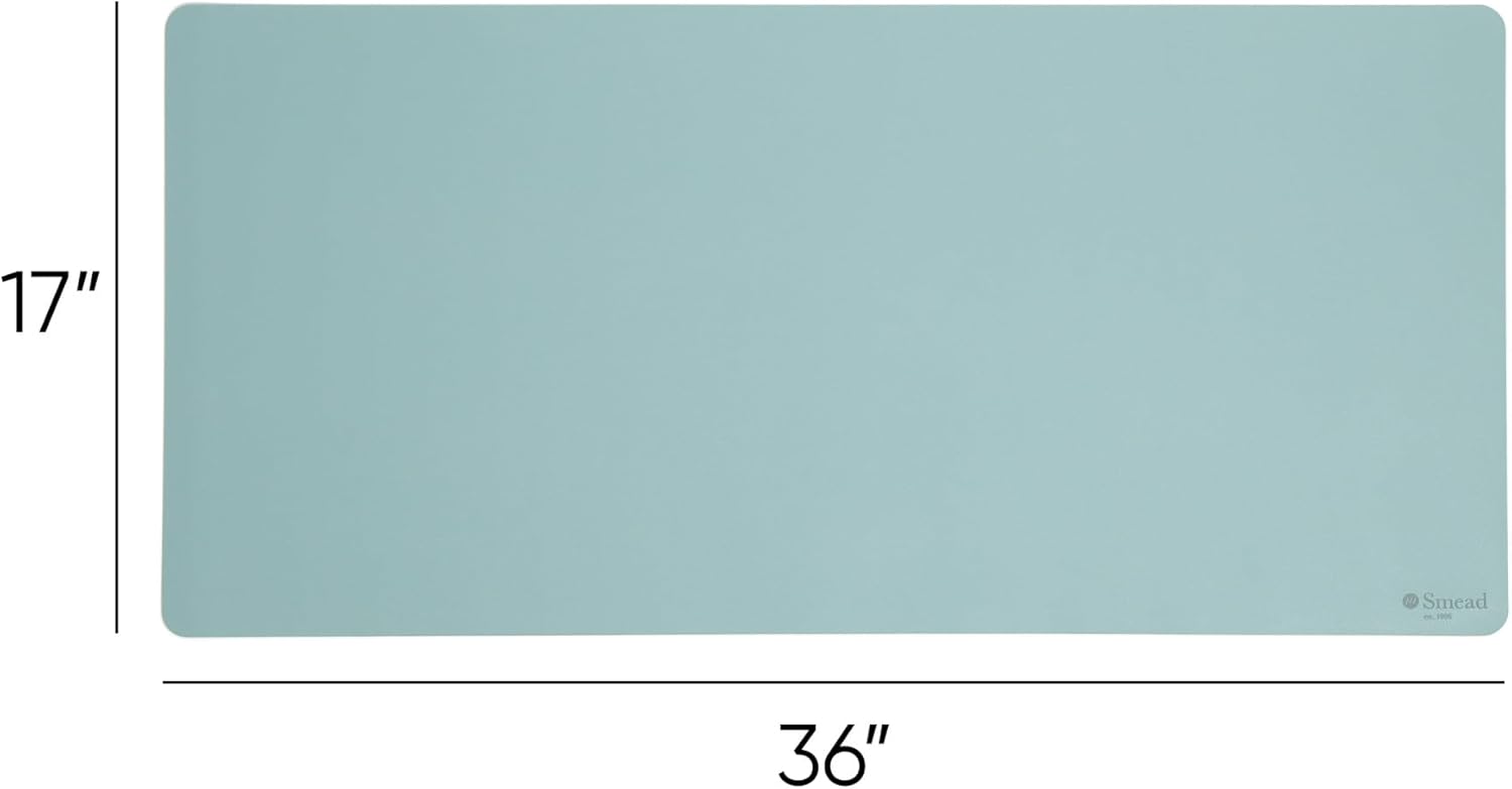 Smead Desk Pad, Vegan Leather Desk Mat with Non-Slip Faux Suede Backing, Perfect Desk Organizer for Office Decor, 36” x 17” Large, Superior Blue (64830)