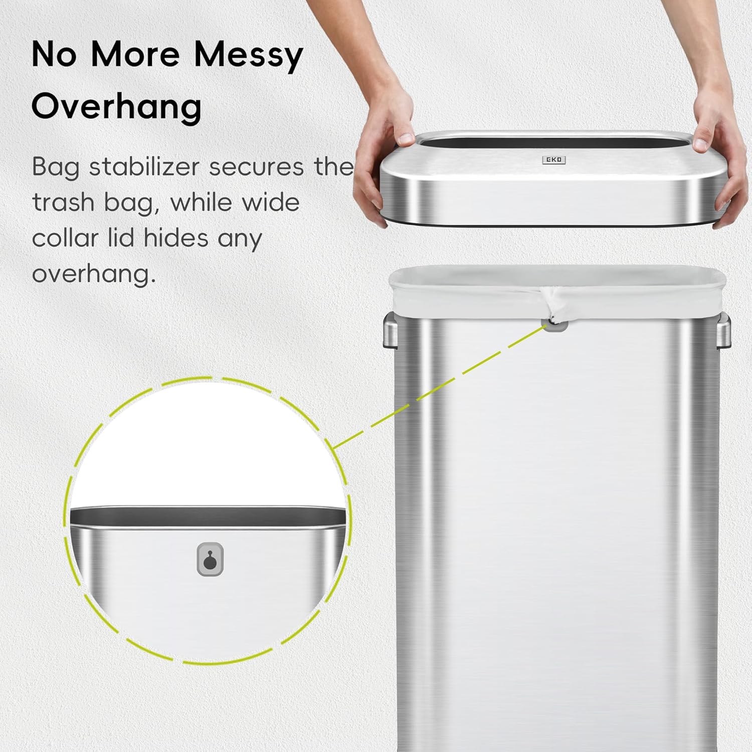 - [Slim Space-Saver] This kitchen trash can features a sleek vertical design, allowing it to fit snugly against the wall and save space.