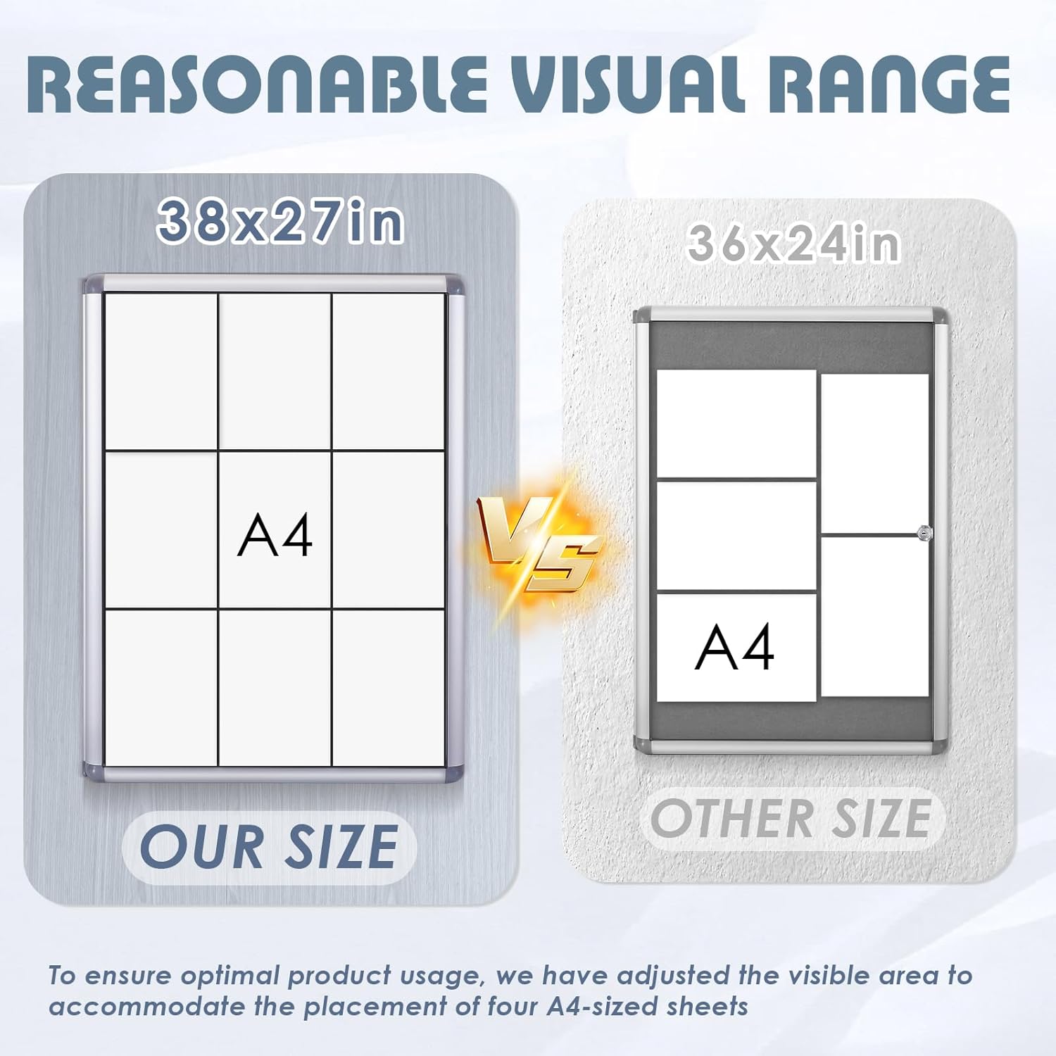 Enclosed Bulletin Board Lockable Display Case Message Board with Locking Door for Indoor, Black Felt, Silver Aluminum Frame, 38x28inches(9xA4)
