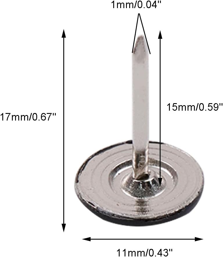 - PACKAGE CONTENT: 100Pcs black flat head upholstery tacks, enough quantity to meet your daily needs. Total Size:11mm*17mm/ 0.43" * 0.67"(Dia.xH), elegant for furniture decoration