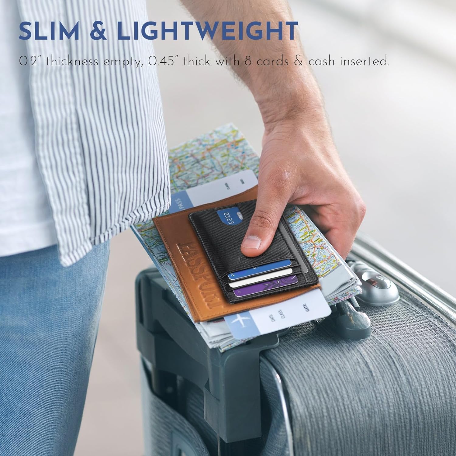- SURPRISINGLY SPACIOUS: Though slim, it features 8 slots to easily organize your essentials. Comfortably holds your driver's license, credit cards, debit cards, and membership cards, keeping everything you need right at your fingertips.