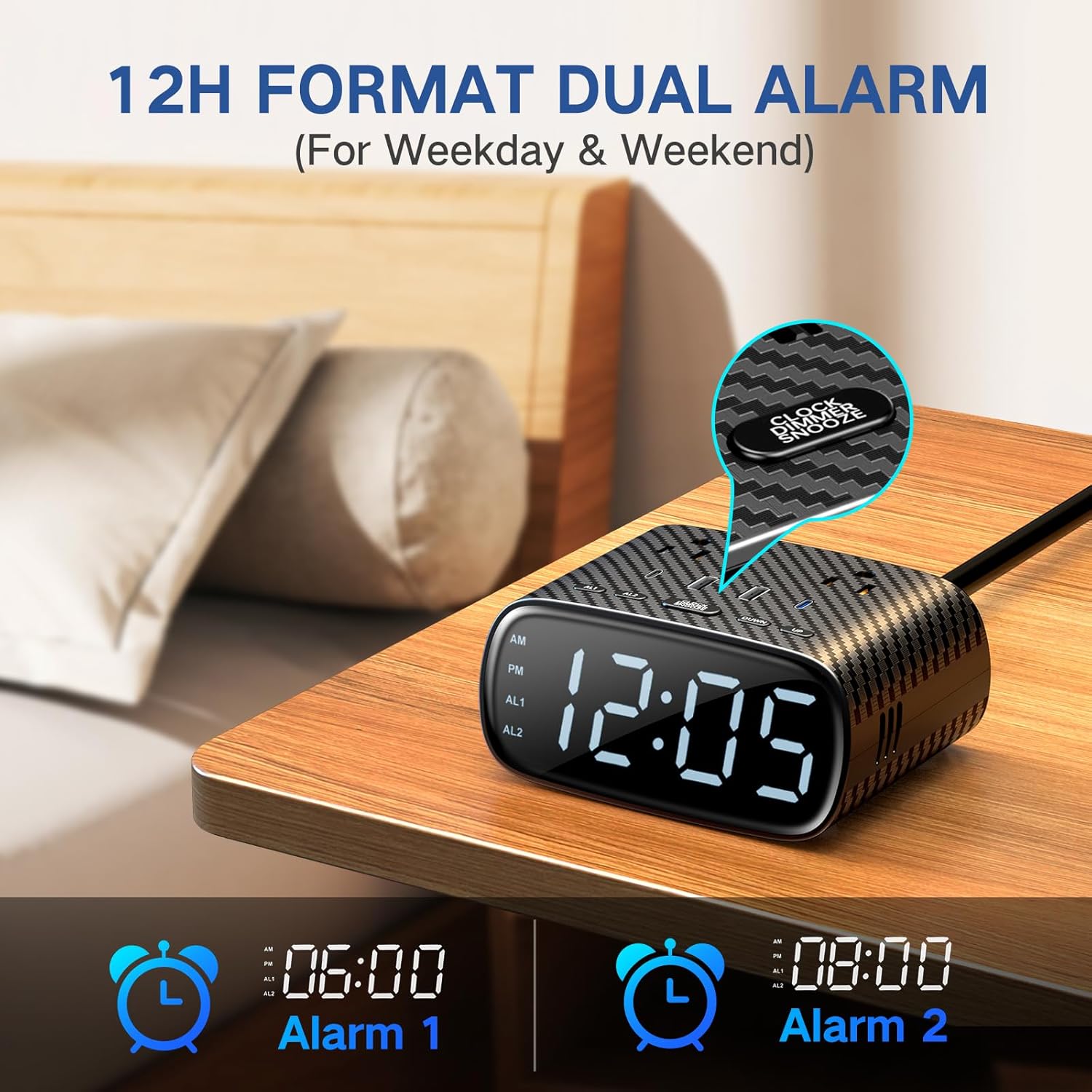 - ใ๐-๐๐-๐ ๐๐ฅ๐๐ซ๐ฆ ๐๐ฅ๐จ๐๐ค ๐ฐ๐ข๐ญ๐ก ๐๐๐ ๐๐จ๐ซ๐ญ๐ฌใThis alarm clock with USB Ports and outlets is equppied with both 4 USB ports and 2 AC outlets. This black alarm clock USB ports contents 20W USB-C, standard USB-C and 2 USB-A ports. No more than another power strip, it is able to achieve the faster charging and alarm clock function at meantime.