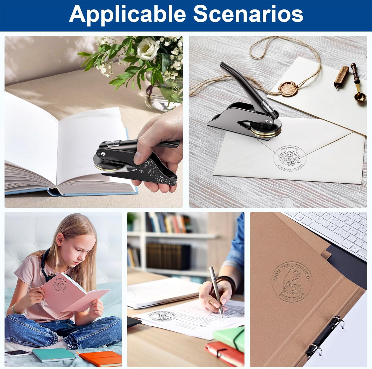 Book Embosser Personalized Custom Embosser Stamp Your Own Text or Logo Design for Books Business Cards Paper Documents Notebooks etc.