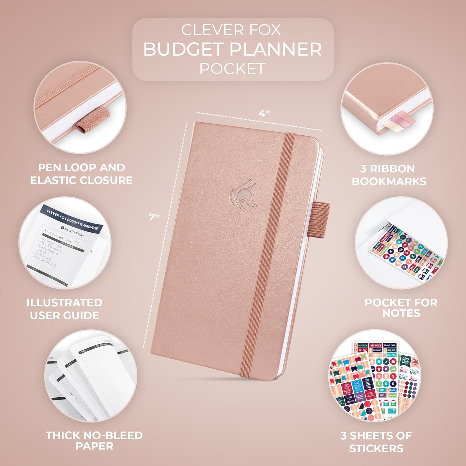Clever Fox Budget Planner Pocket – Mini Expense Tracker Notebook. Monthly Budgeting Organizer, Finance Logbook & Accounts Book, Small (Rose Gold)