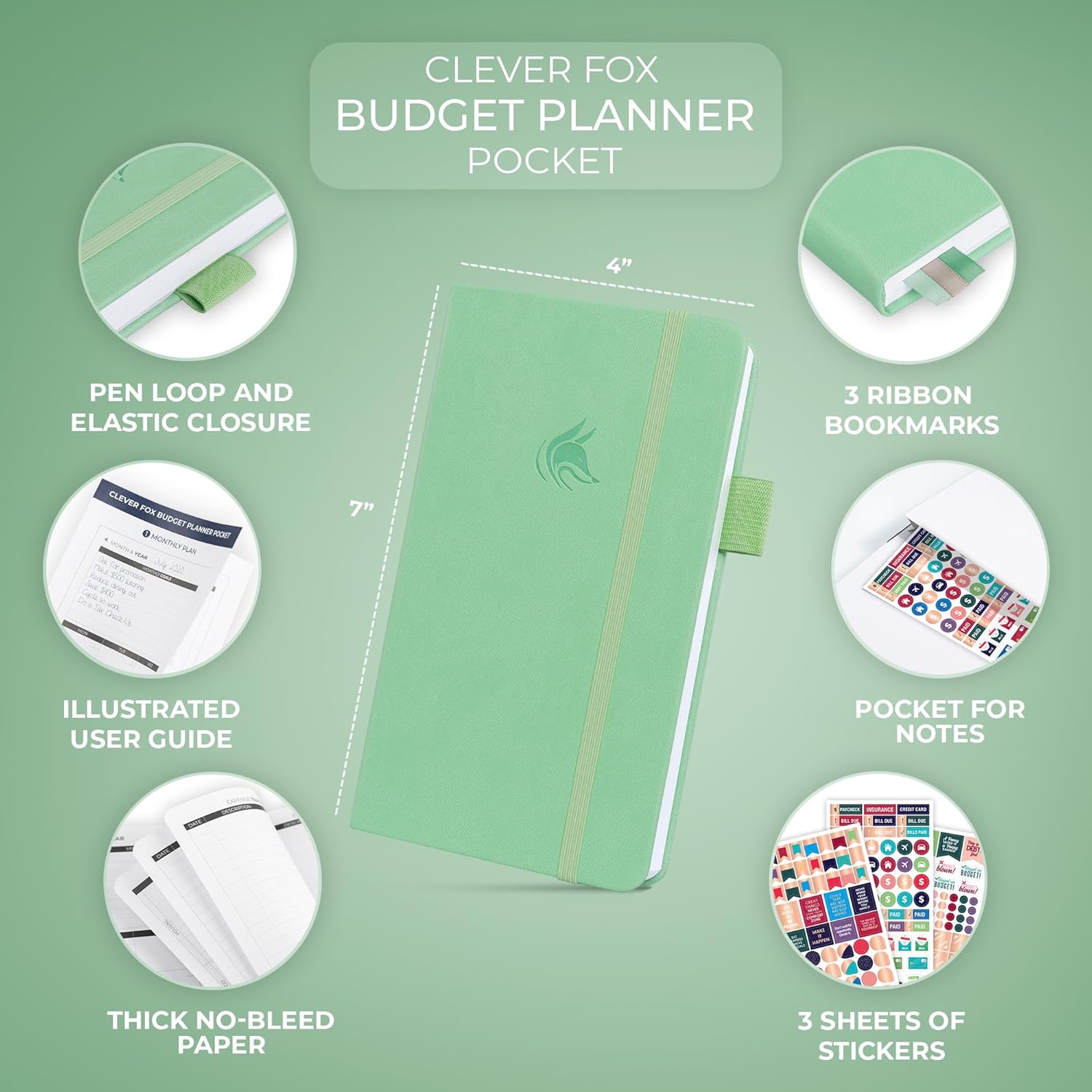 Clever Fox Budget Planner Pocket – Mini Expense Tracker Notebook. Monthly Budgeting Organizer, Finance Logbook & Accounts Book, Small (Mint Green)