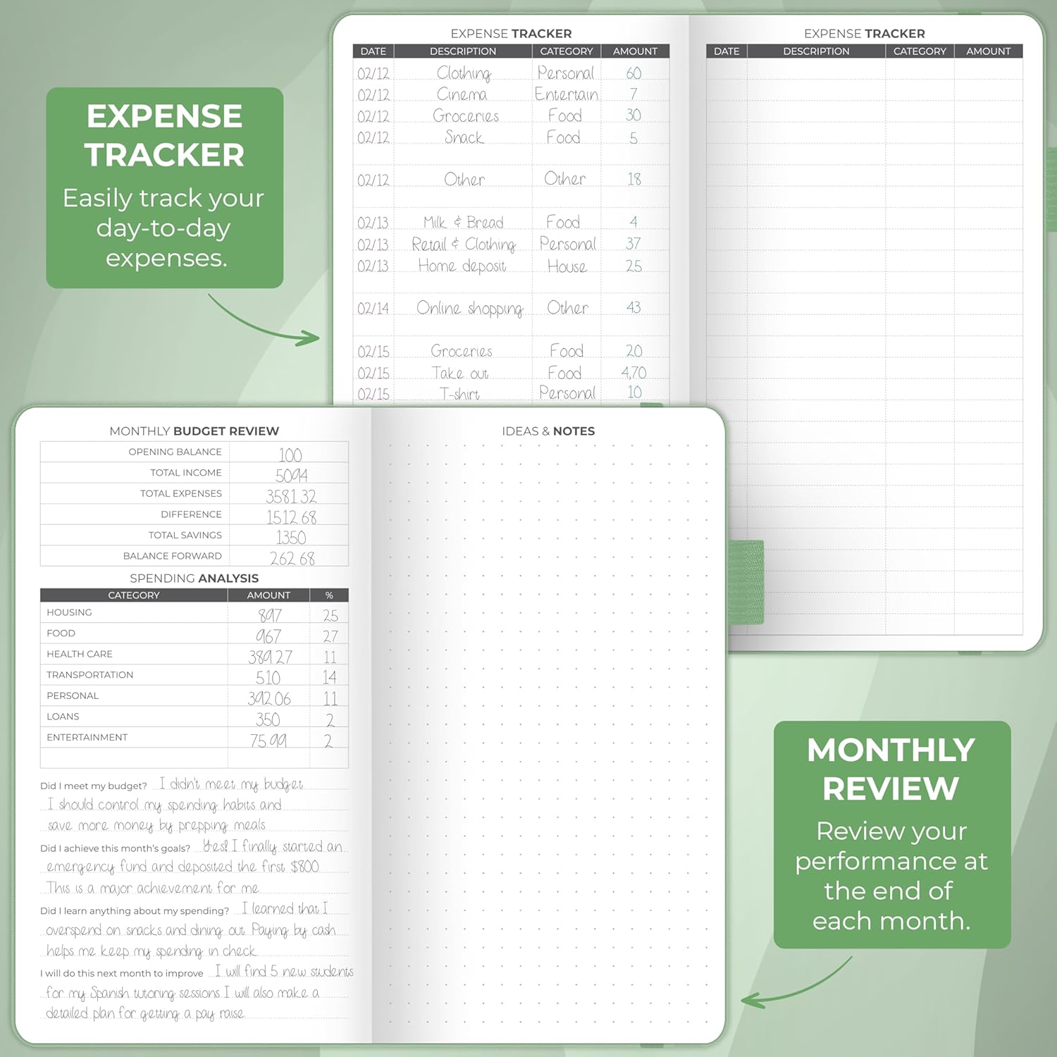 - Effortlessly Manage Spending, Debts, and Savings – This 12-month finance planner features an undated format with monthly calendars, budget plans, expense trackers, 8 savings and 12 debt trackers.