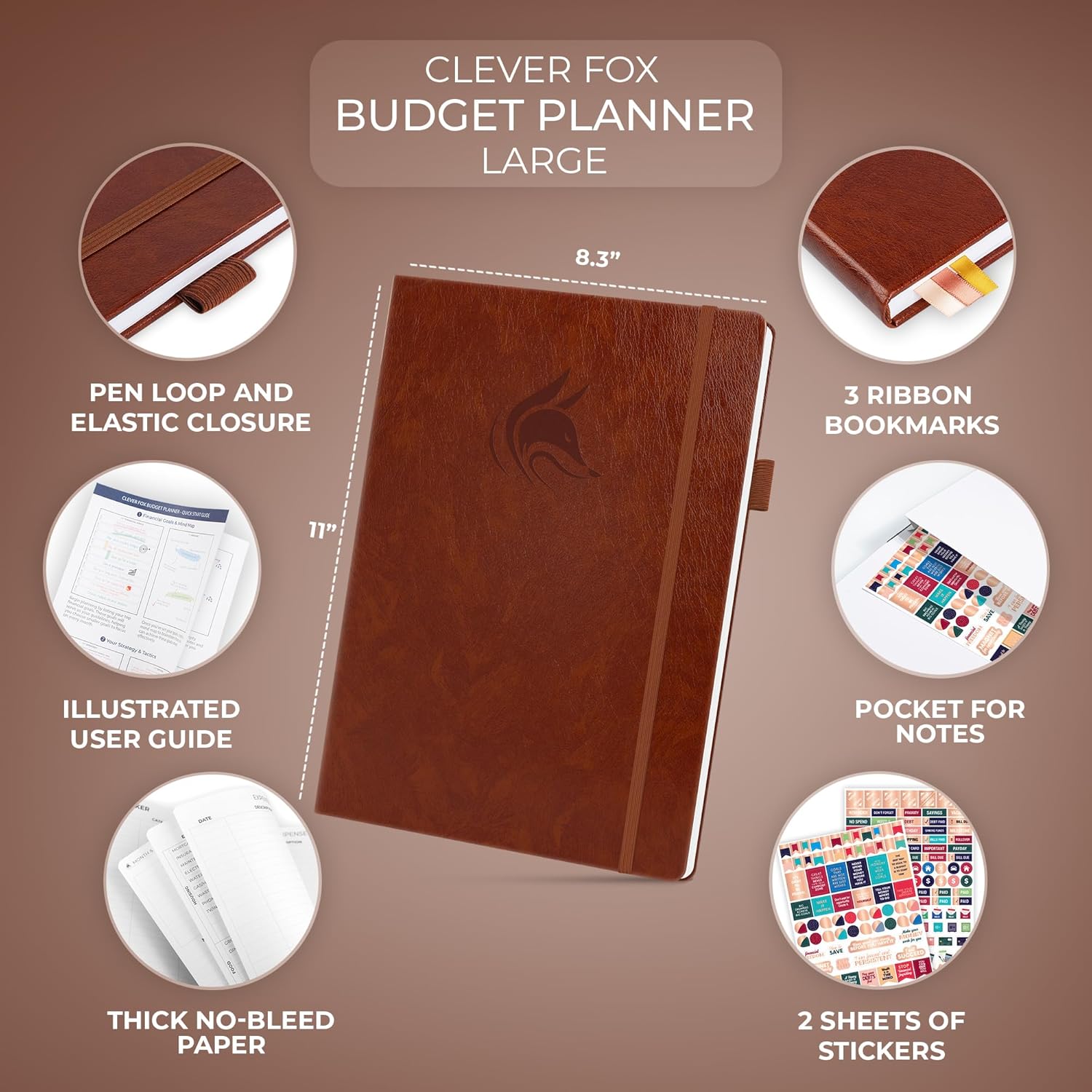 Clever Fox Budget Planner Large – Expense Tracker Notebook. Monthly Budgeting & Bill Organizer, Finance Logbook & Accounts Book, A4 (Brown)