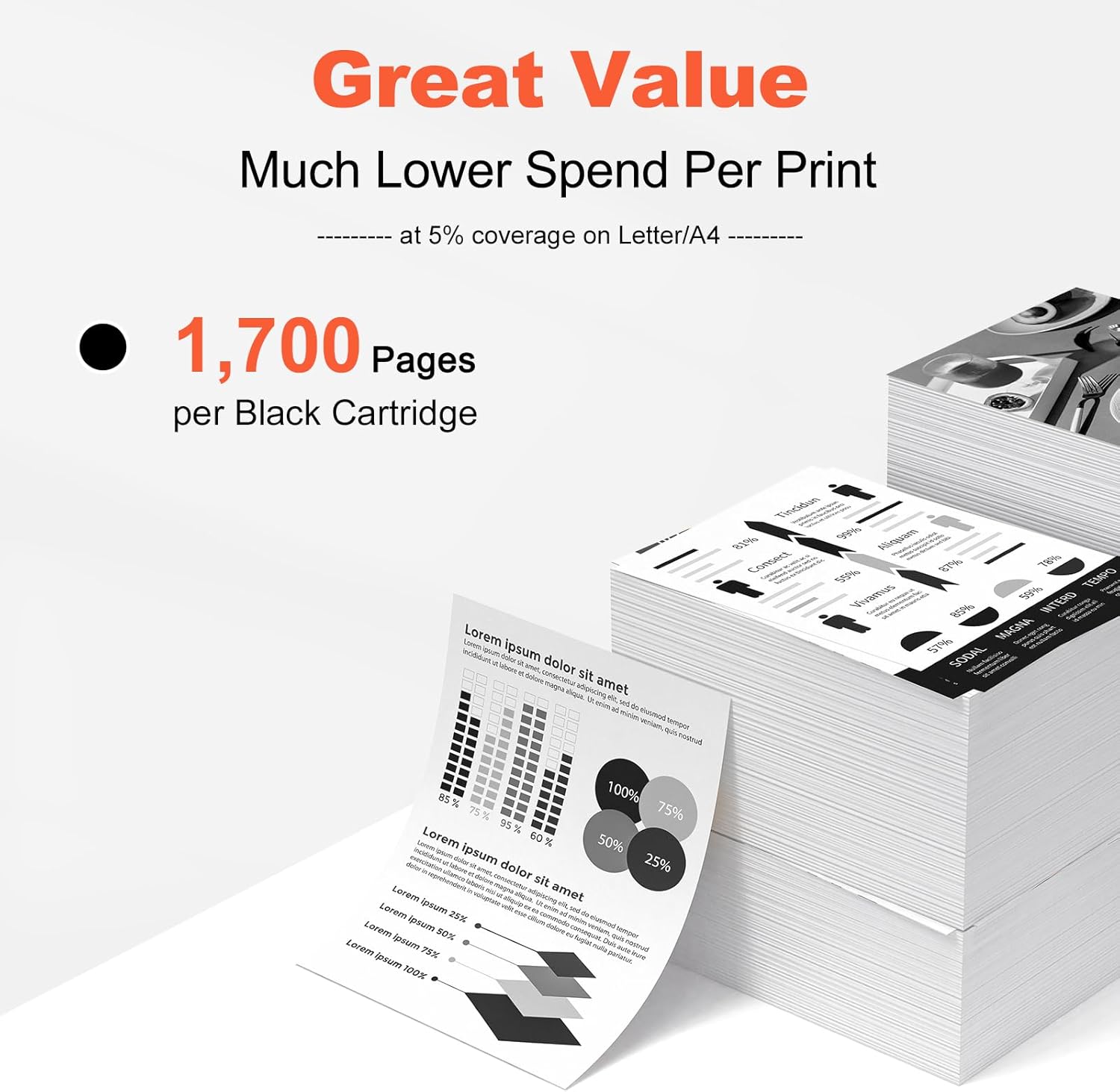 - Page yield: 1,700 pages per toner cartridge at 5% coverage A4 paper.