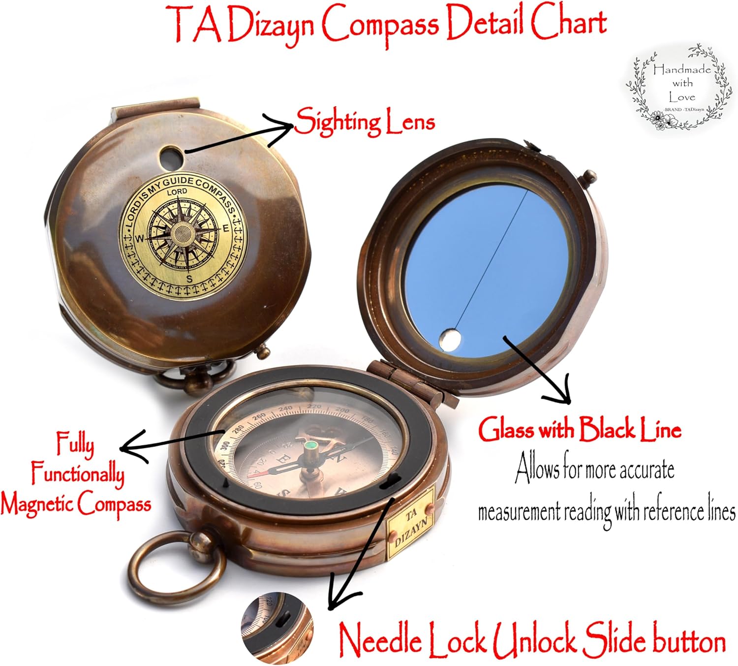 - Solid Brass Compass Antiquated Brass Finish With Trust in The Lord with All Your Heart -Proverbs 3: 5-6 Quote Engraved Compass with Wooden Box
