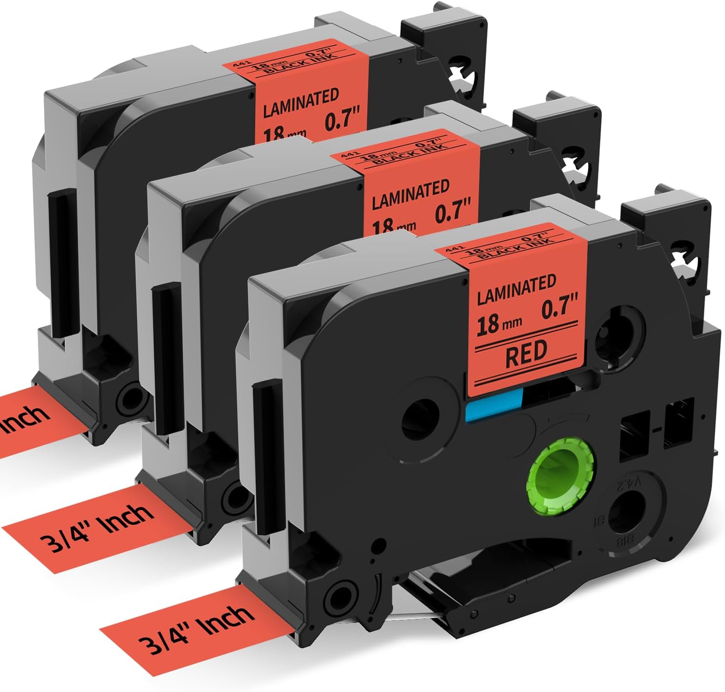- Color: Black on Red, 3-pack replacement for Brother TZE-441 TZE441 TZ-441 3/4" Red Label Tape. Size: 18mm x 8m (3/4 inch x 26.2 ft)