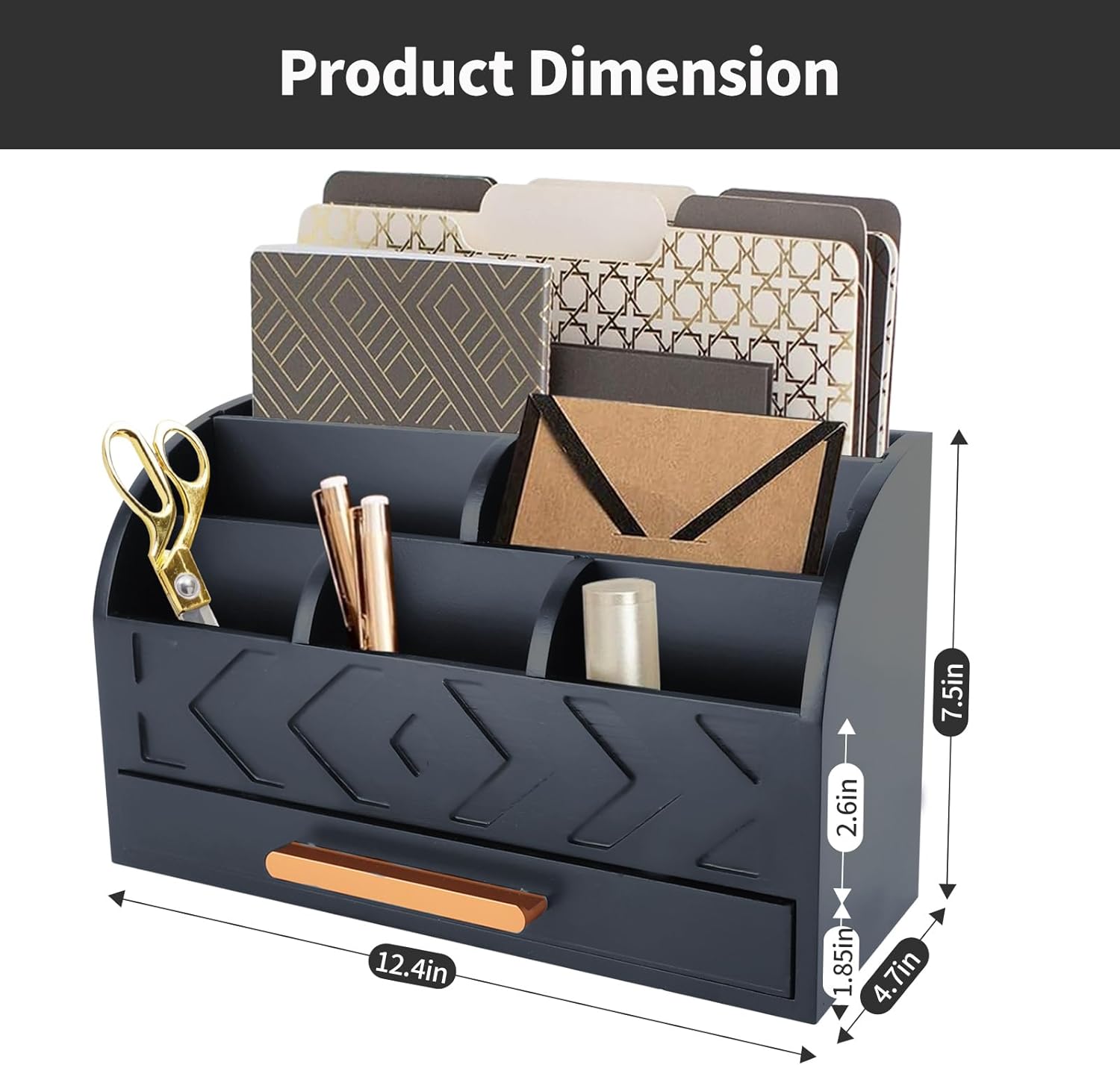 - COMPACT & LARGE CAPACITY: Features 6 compartments + drawer for office desk organizers needs. The compact mail holder solution holds letters/bills without occupying excess space, ideal as desktop mail organizer or countertop organizers.