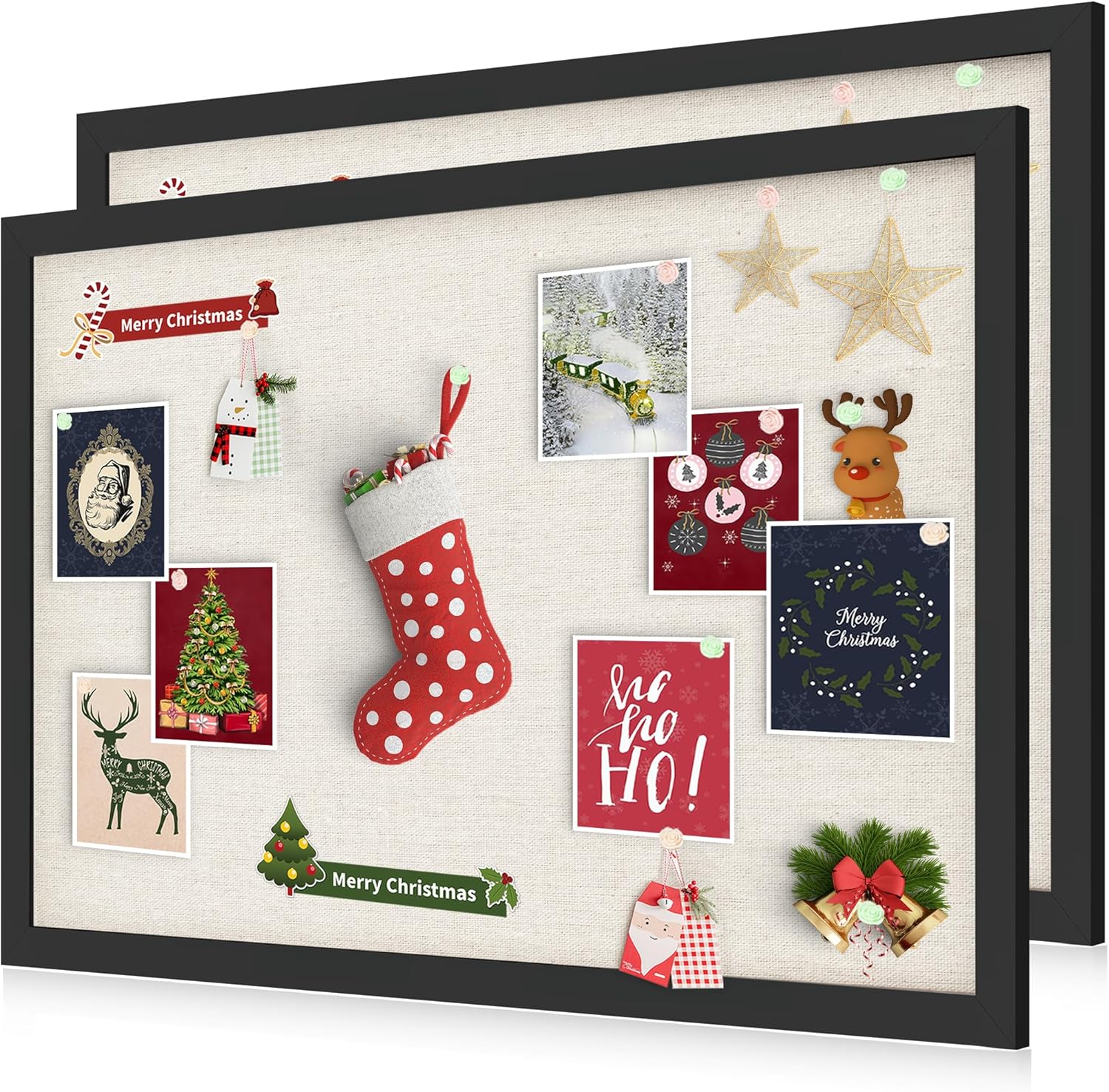 Cork Board Bulletin Board 18" x 24", 2-Pack Large Linen Corkboards with Frame for Walls, Cute Picture Display Pin Board Vision Board for Room School Office Bedroom 40 Pushpins Vintage Black