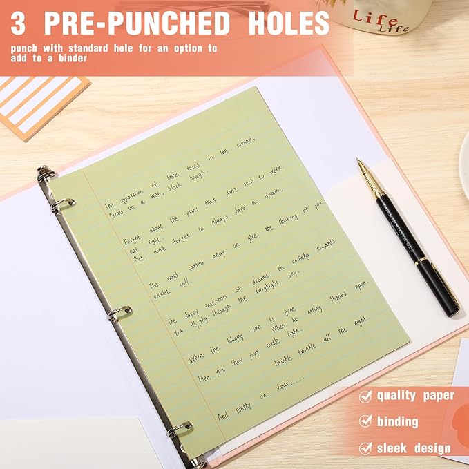 - Designed for Binders: our 3 hole colored filler paper can be added to file folders, fits standard ring binders and pocket folders with tight fasteners, or can be used on its own, helps with organization and planning