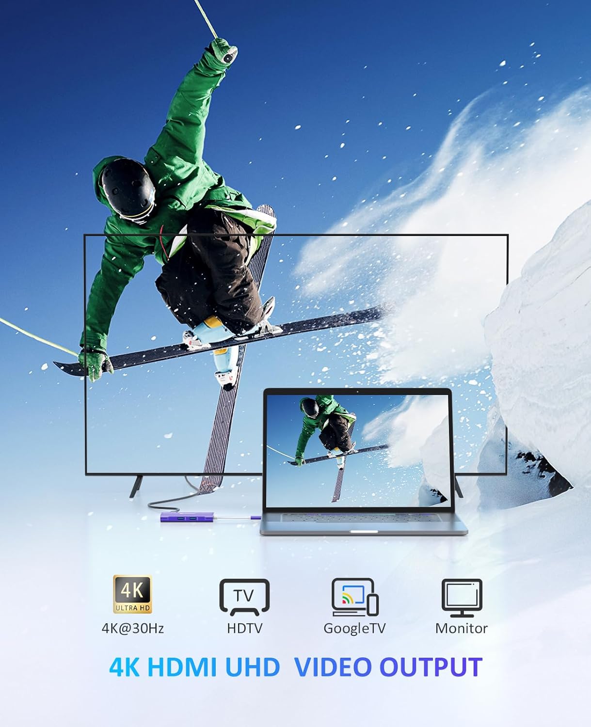 - 【Immersive Viewing】The 4K resolution of USB to HDMI adapter ensures that the video output is crystal clear and sharp, making it ideal for streaming, gaming, and video editing.