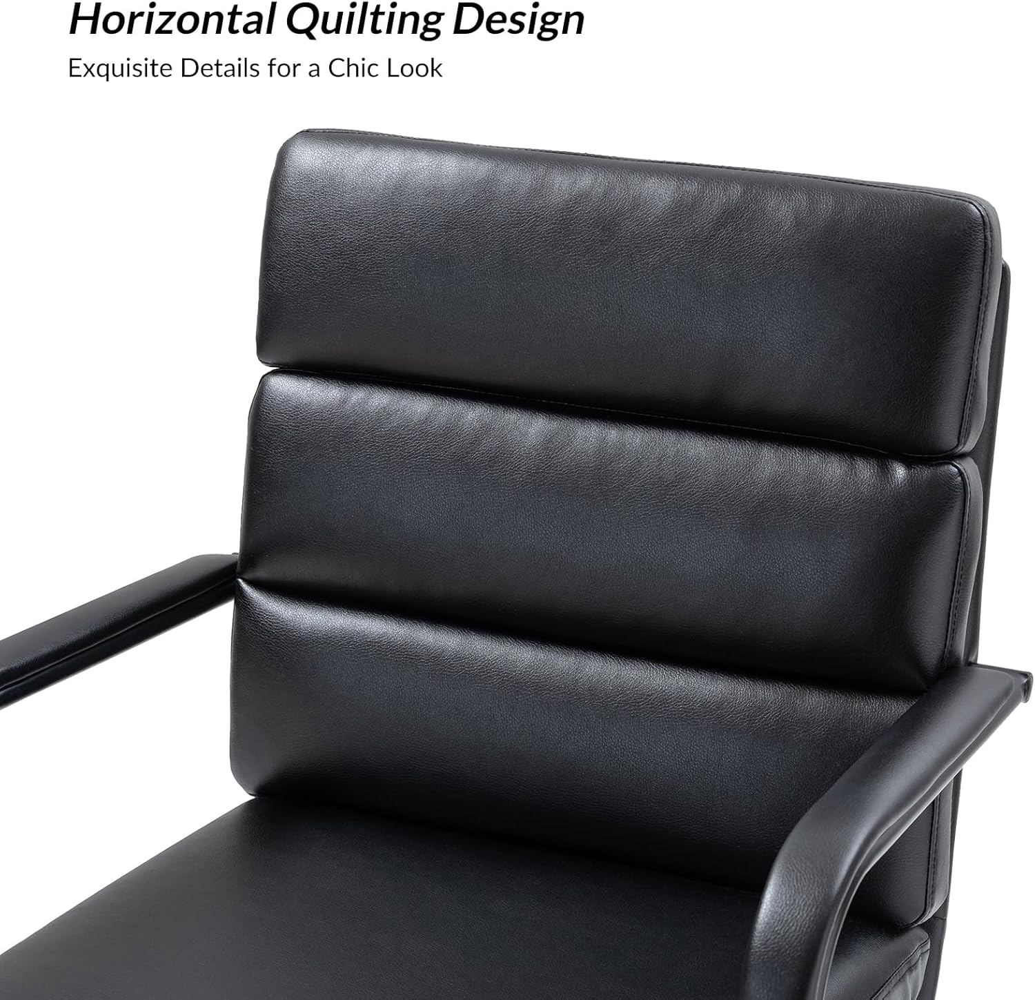 HULALA HOME Modern Faux Leather Home Office Chair with Tilt Lock & Metal Base, Desk Chair with Wheels & Padded Cushion, 360° Swivel Wide Seat Computer Task Chair, Black